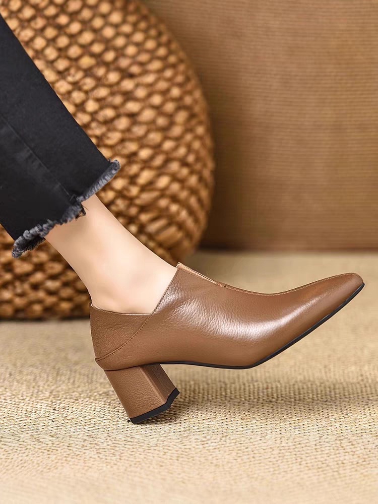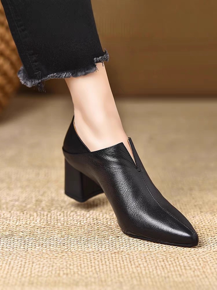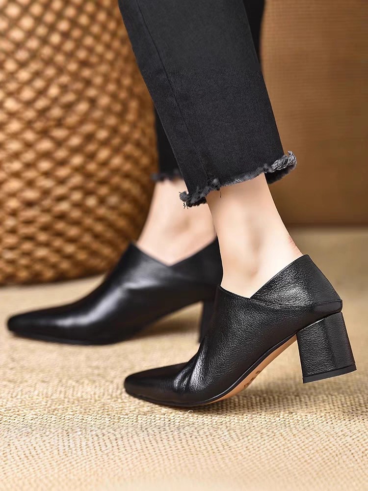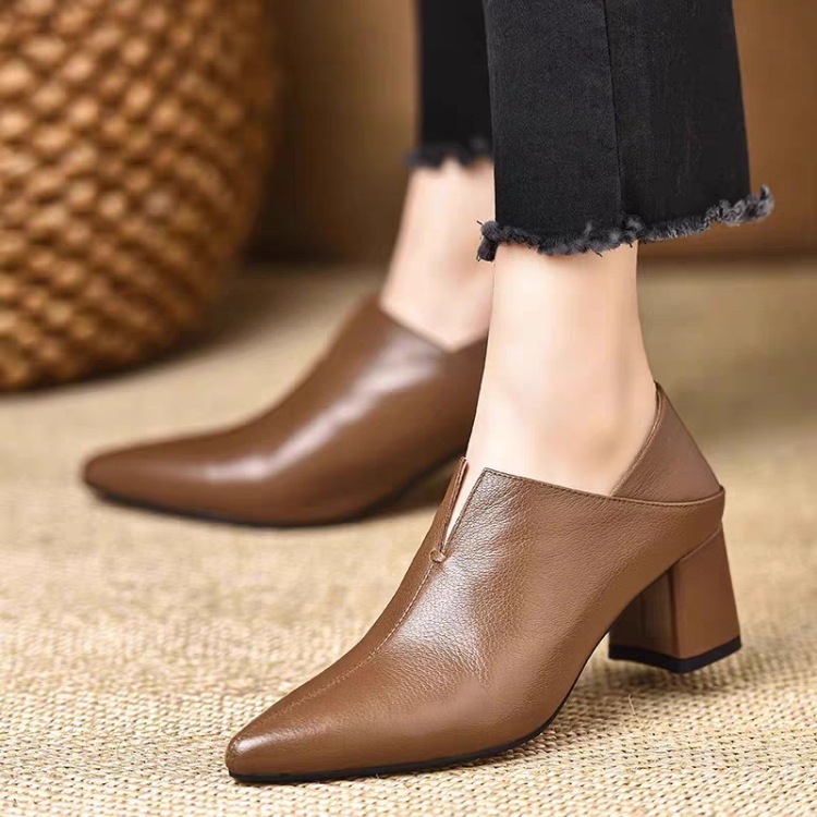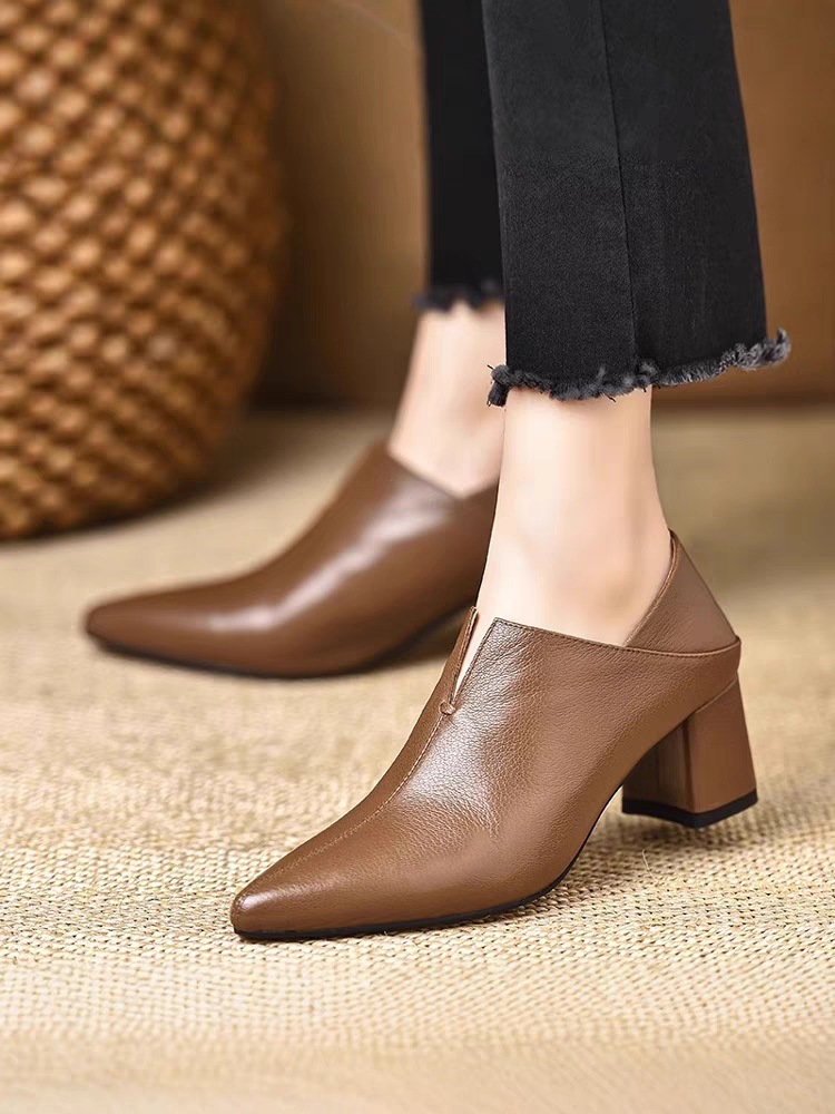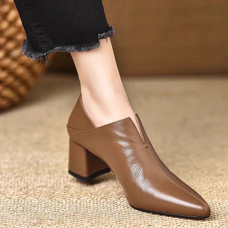 여성을위한 부드러운 가죽 하이힐 신발 2025 새로운 섹시한 뾰족한 발가락 중간 굽 정장 작업 전문 작업 다목적 신발스토어 가기