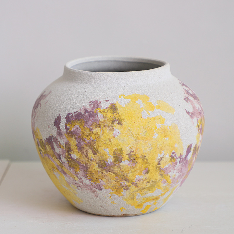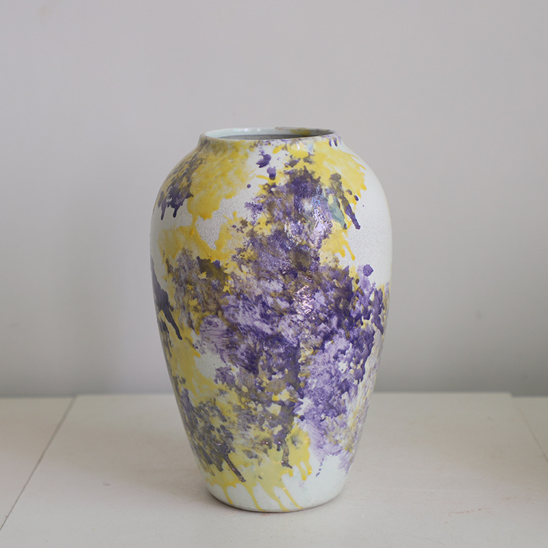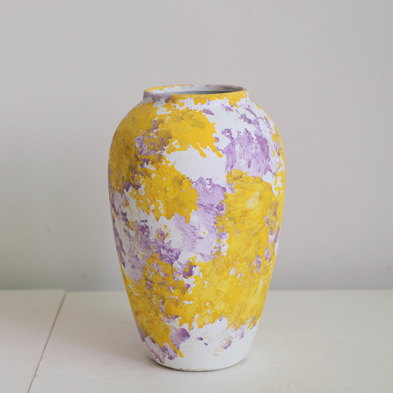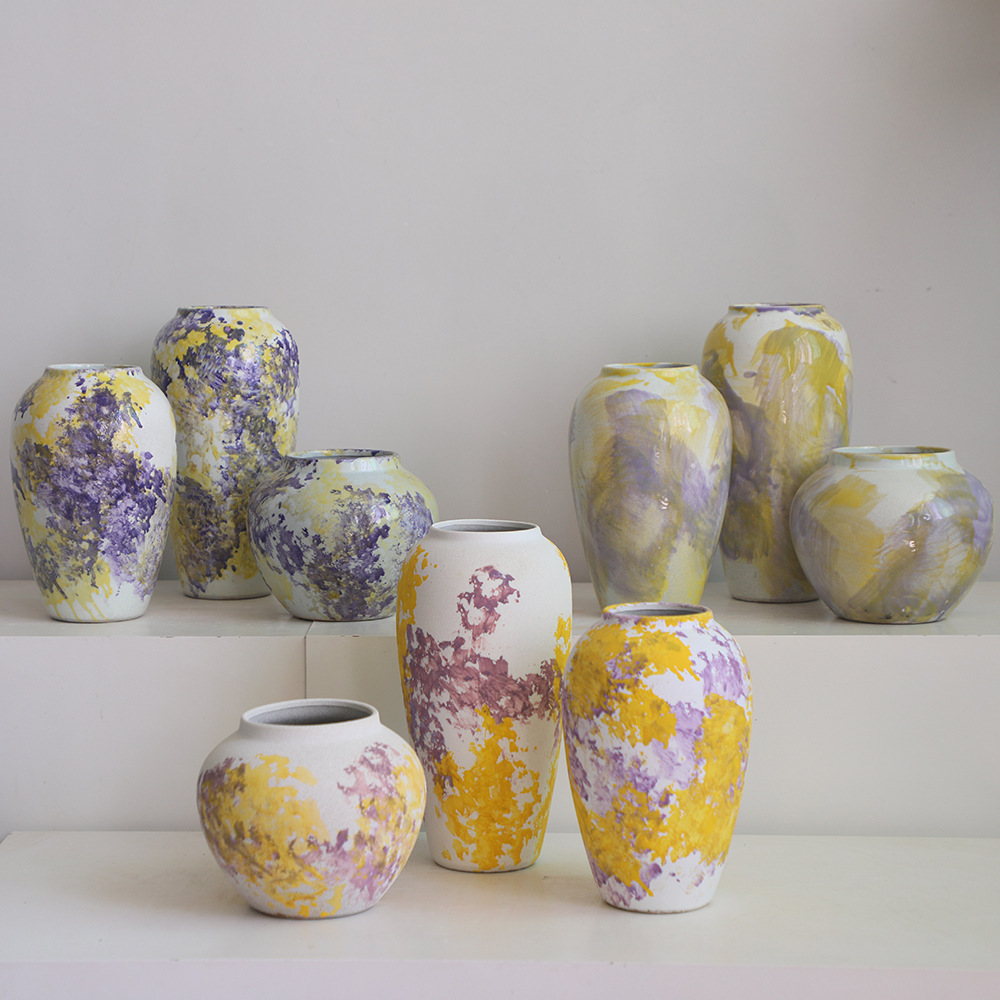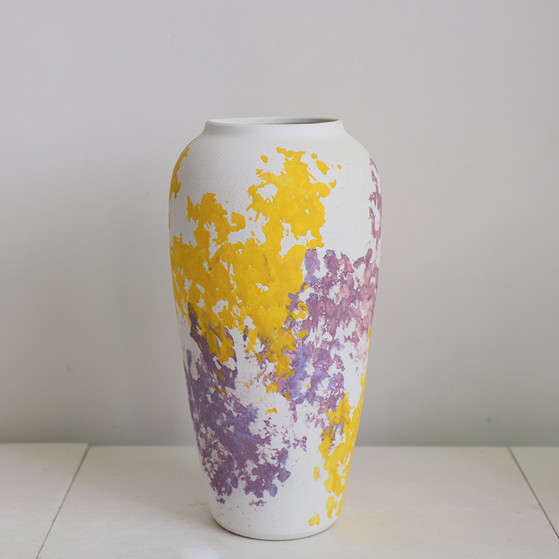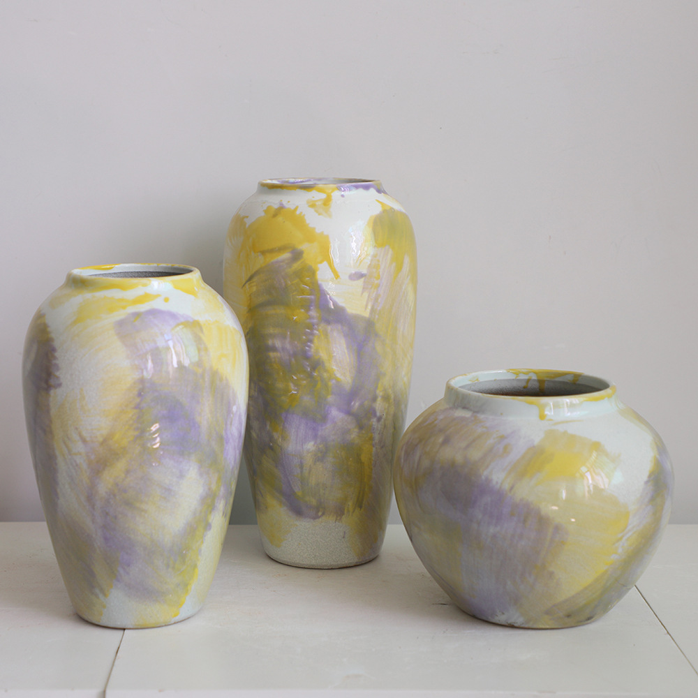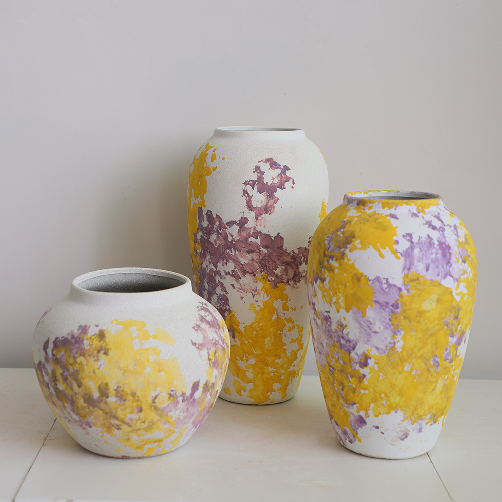 페인트 경덕진 현대 간단한 세라믹 꽃꽂이 꽃병 장식품 거실 수경 말린 꽃 장식 3 피스 세트스토어 가기
