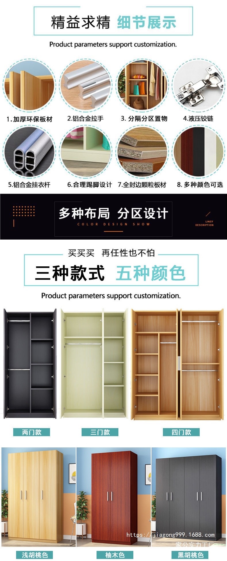 옷장 단단한 나무 간단한 가정용 침실 임대 간단한 패널 조립 보관 캐비닛 보관 캐비닛 대형 옷장