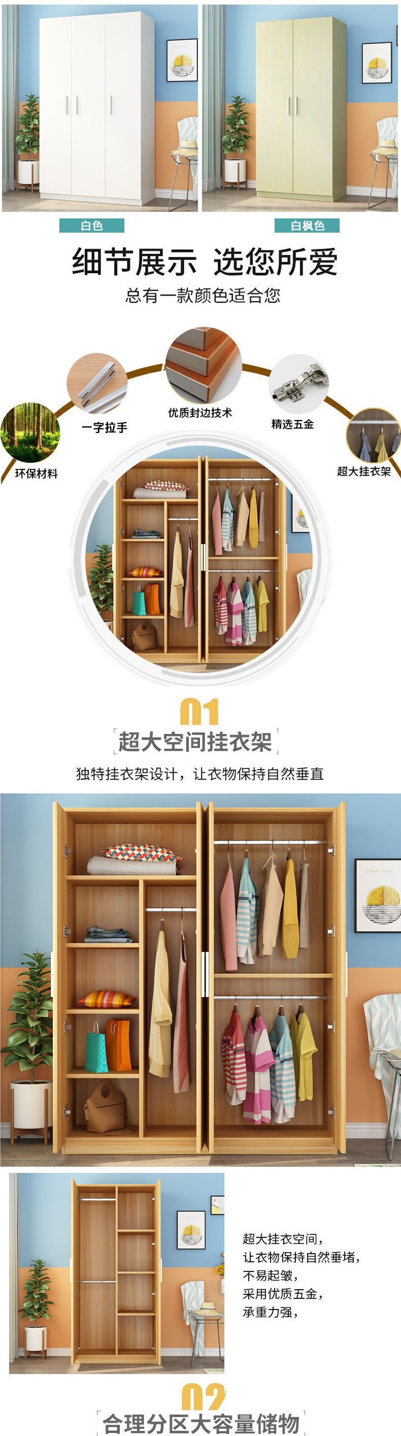 옷장 단단한 나무 간단한 가정용 침실 임대 간단한 패널 조립 보관 캐비닛 보관 캐비닛 대형 옷장스토어 가기