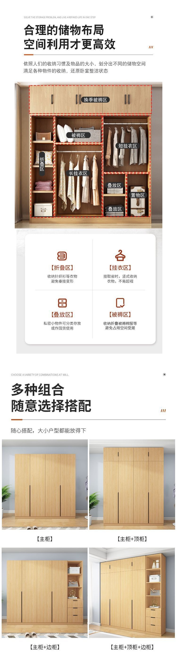 가정용 침실 임대실을 위한 에코보드 원목 옷장, 간단한 두꺼운 후면 패널, 양문형 다기능 깊은 옷장스토어 가기