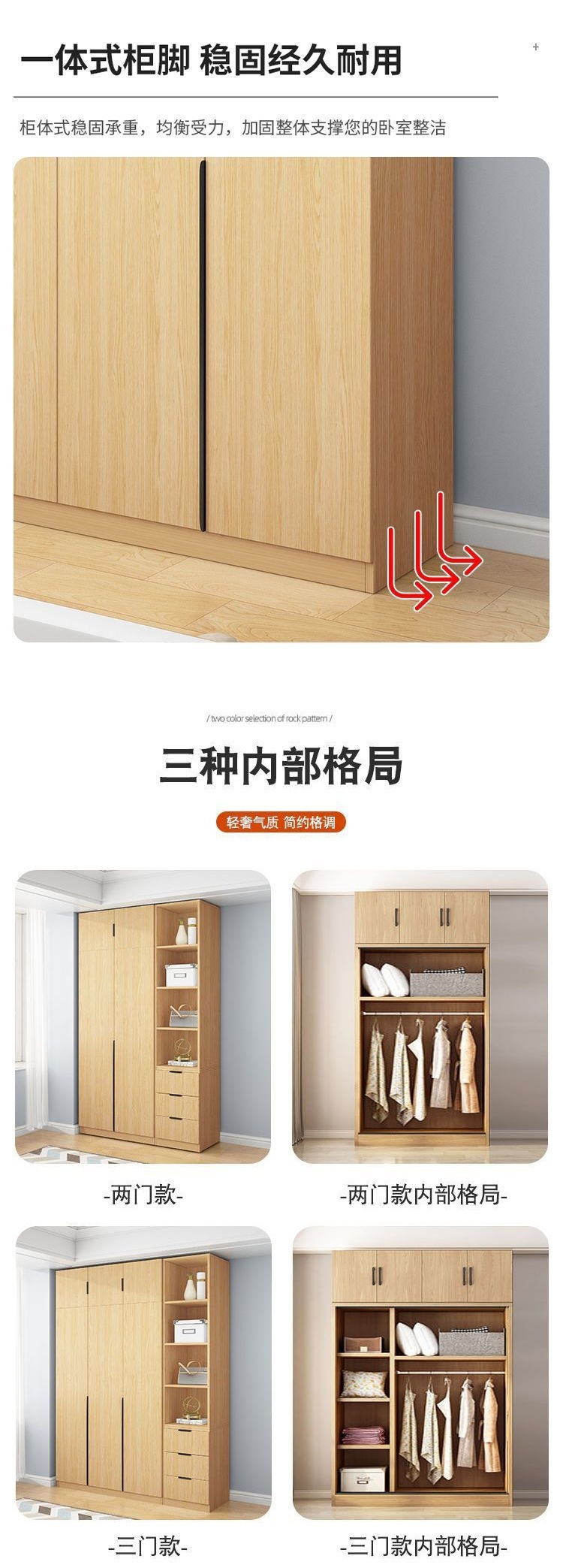 가정용 침실 임대실을 위한 에코보드 원목 옷장, 간단한 두꺼운 후면 패널, 양문형 다기능 깊은 옷장