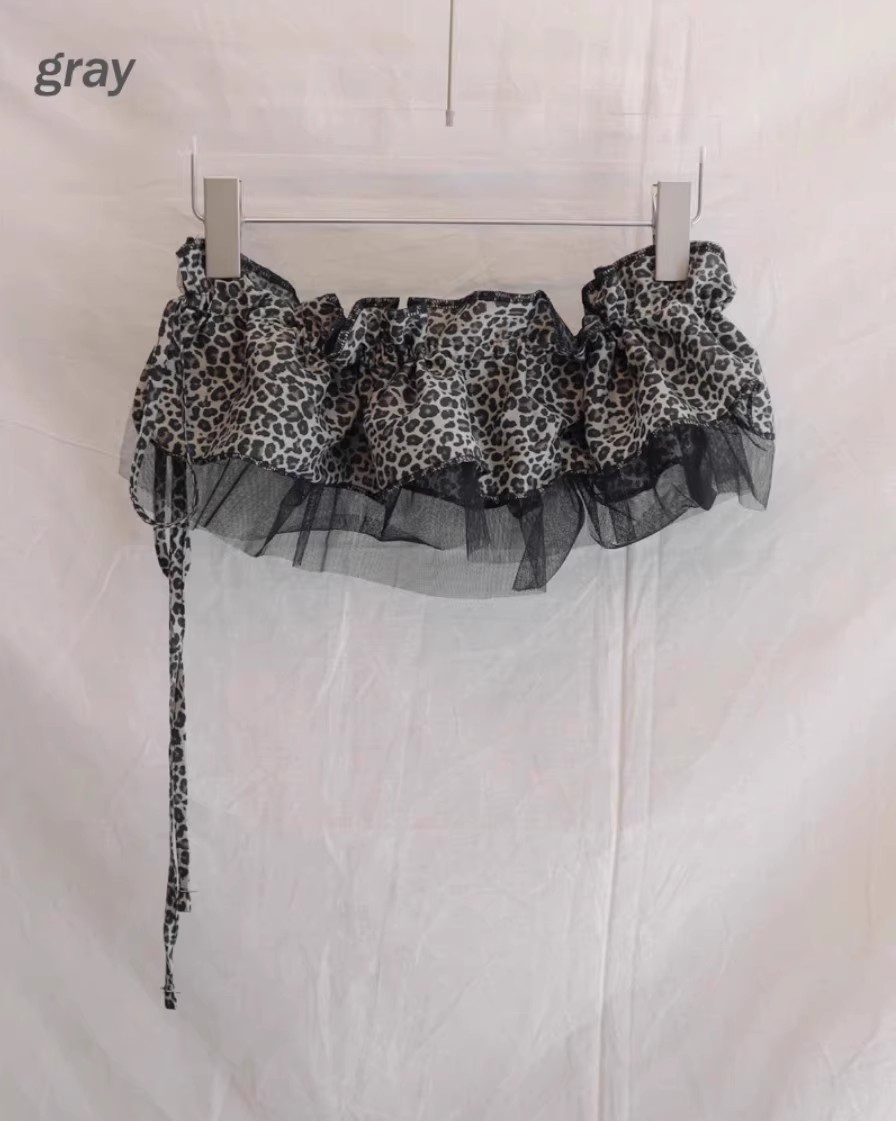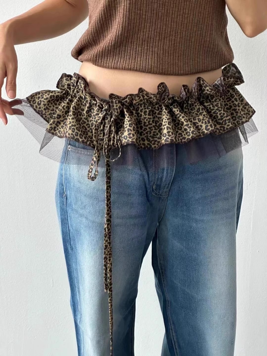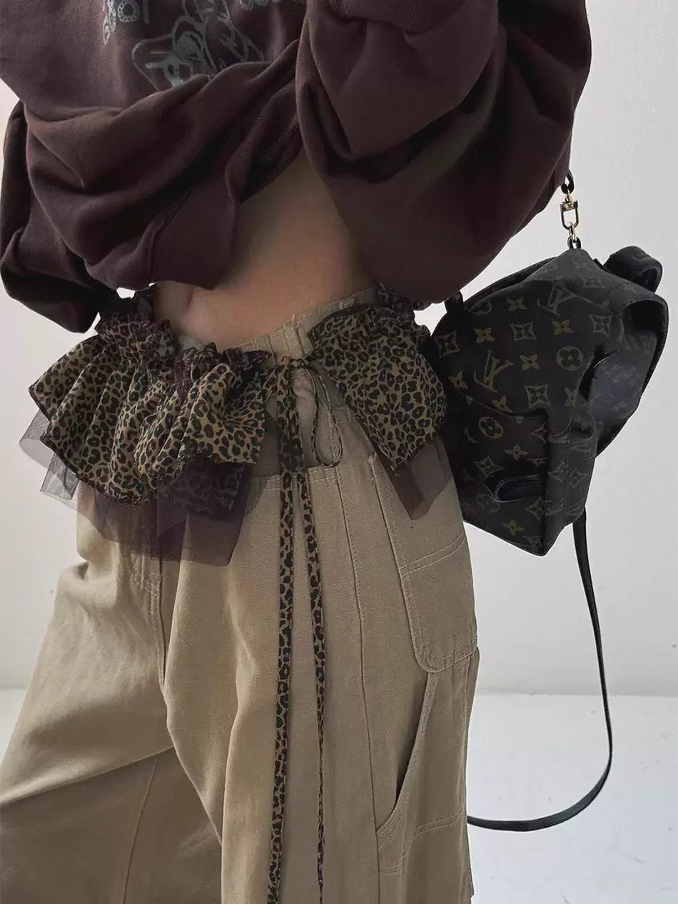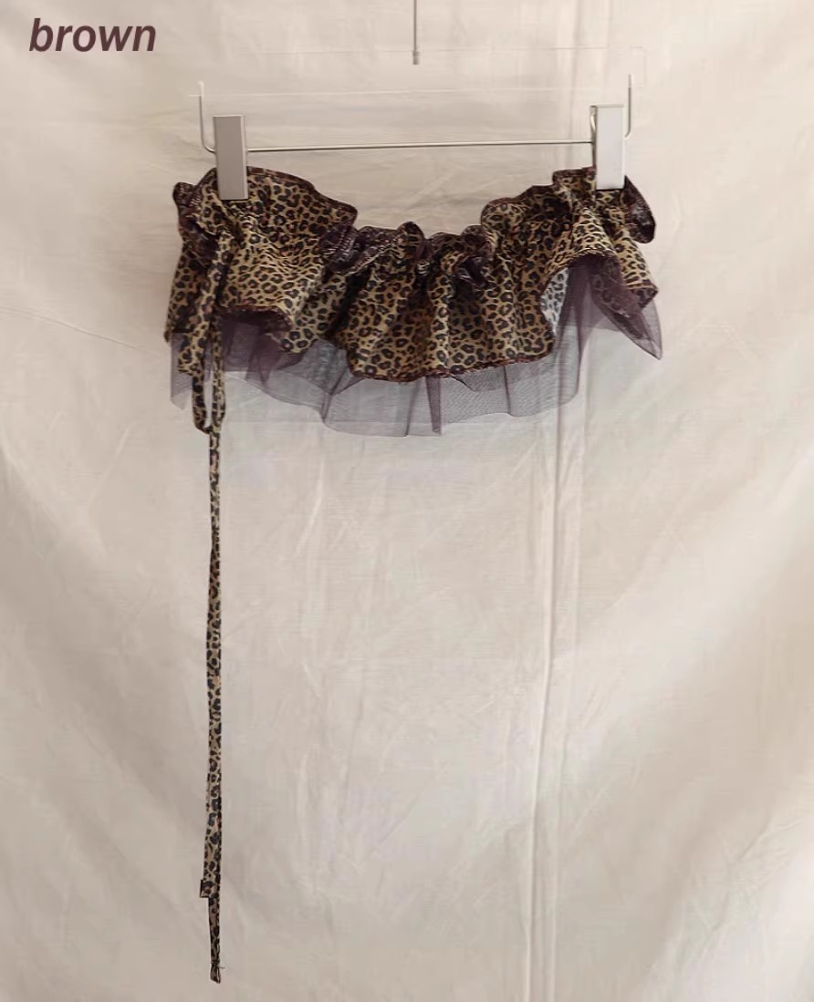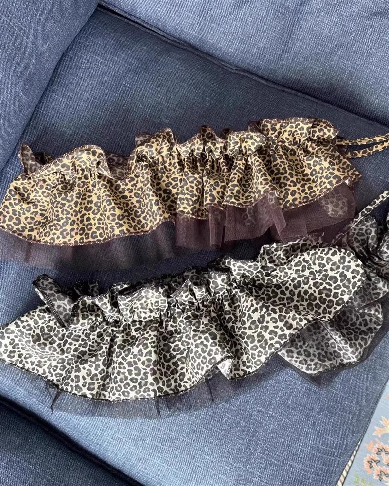 [제조사 직배송] 사계절 레오파드 프린트 앞치마, 레이어드 리본, 스마트 허리 장식, 짧은 스커트와 커튼