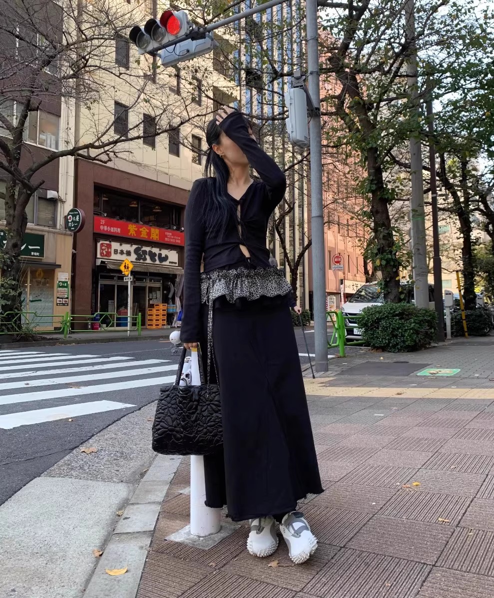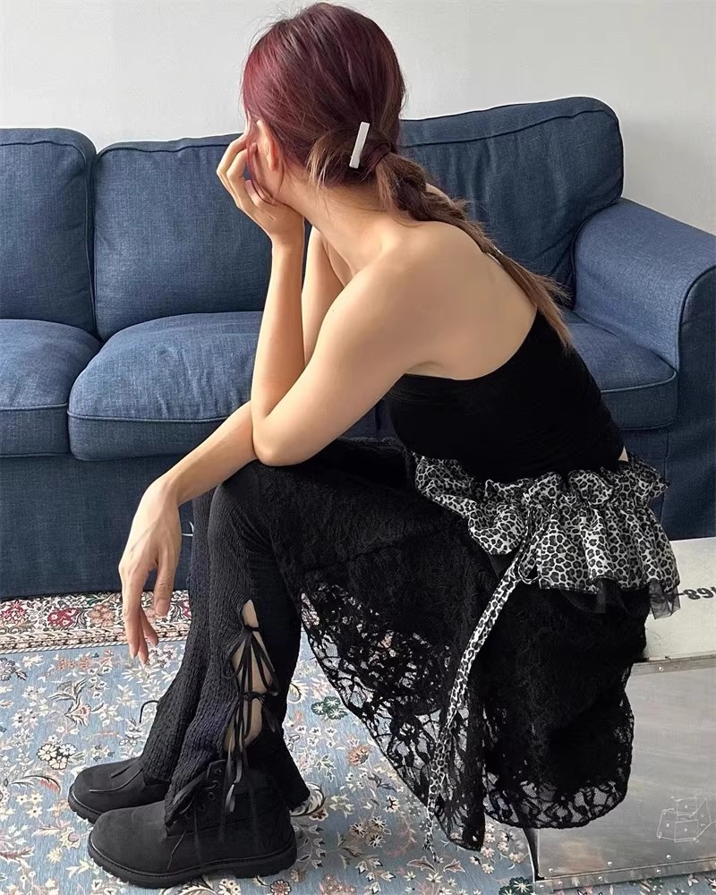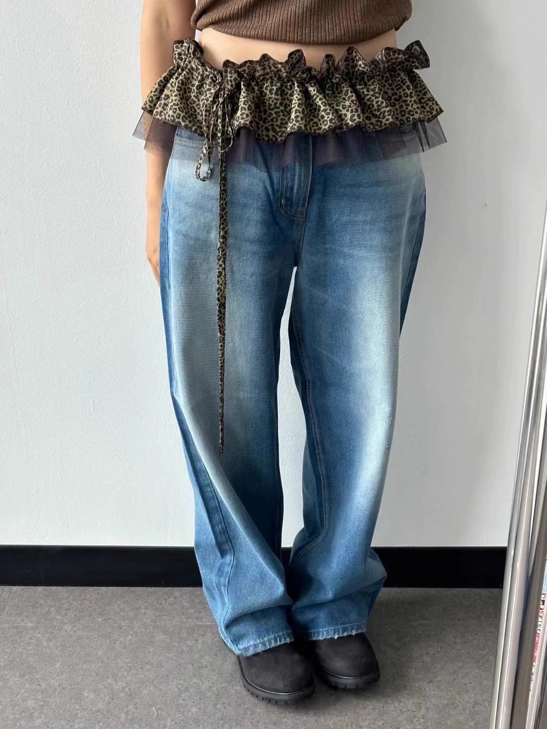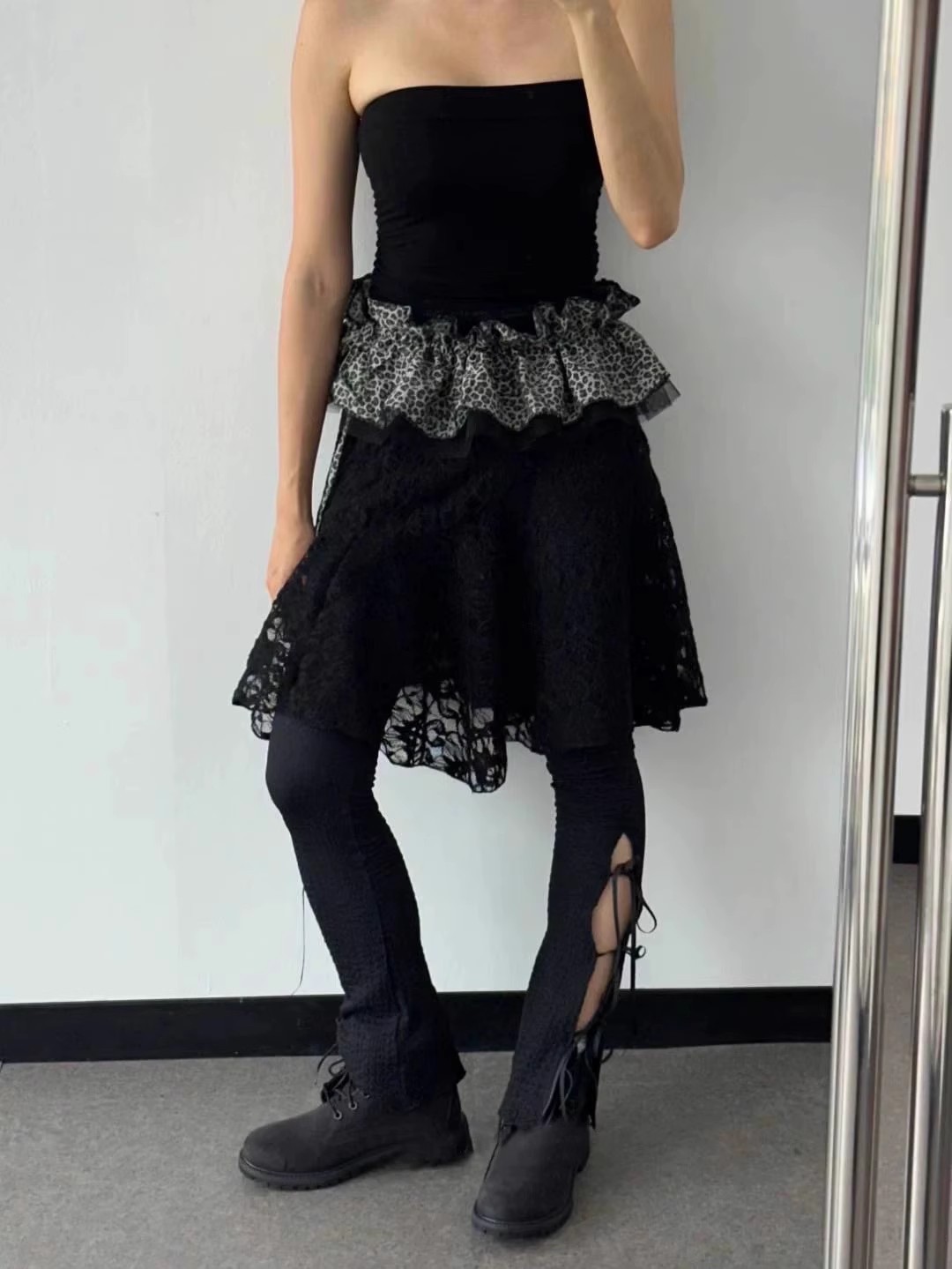 [제조사 직배송] 사계절 레오파드 프린트 앞치마, 레이어드 리본, 스마트 허리 장식, 짧은 스커트와 커튼