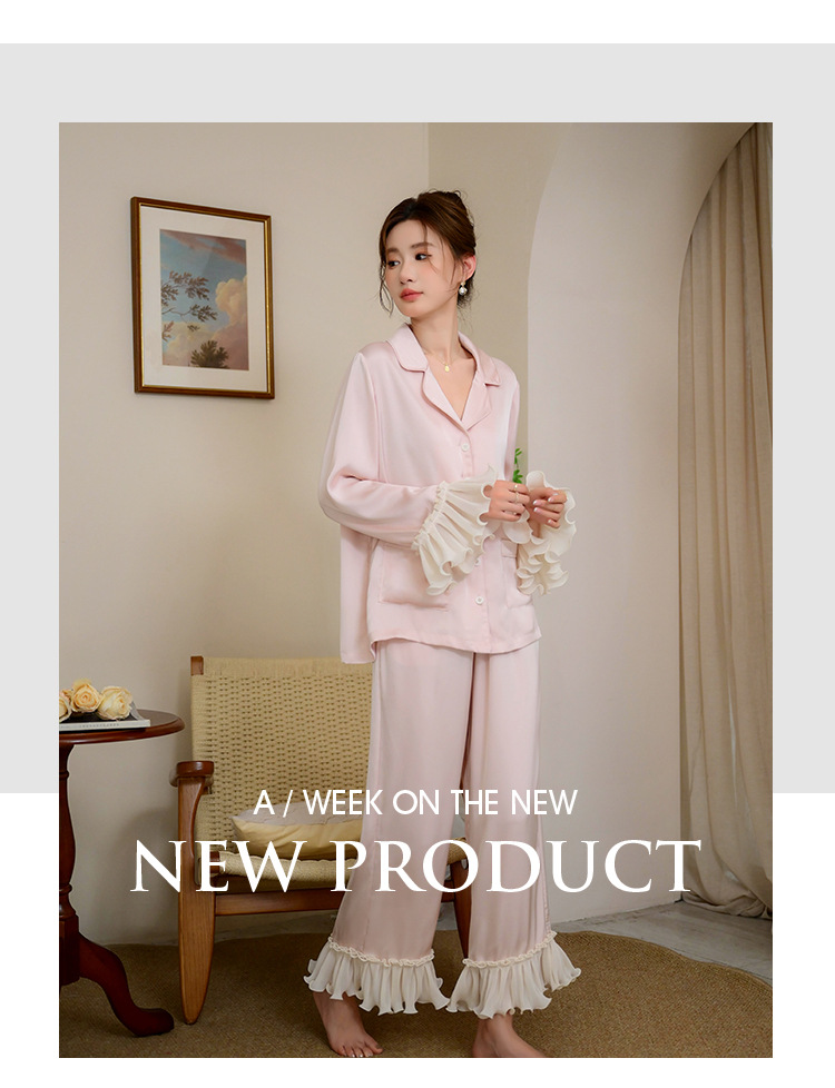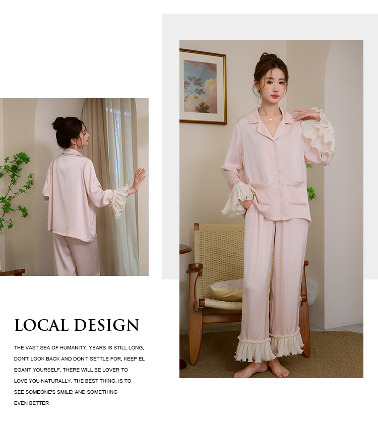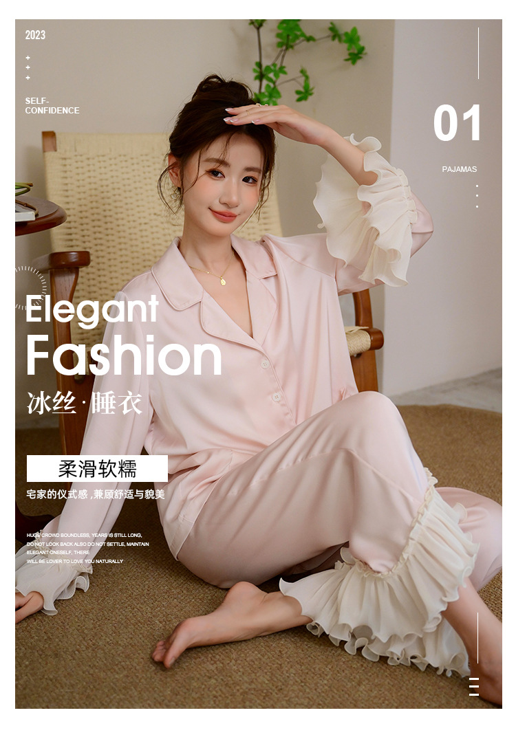 여성을위한 얼음 실크 잠옷 봄, 가을 2023 새로운 패션 느슨한 긴팔 양복 달콤한 하이 엔드 디자인 홈웨어