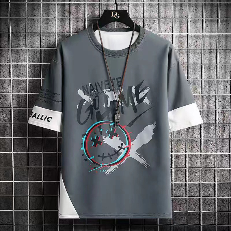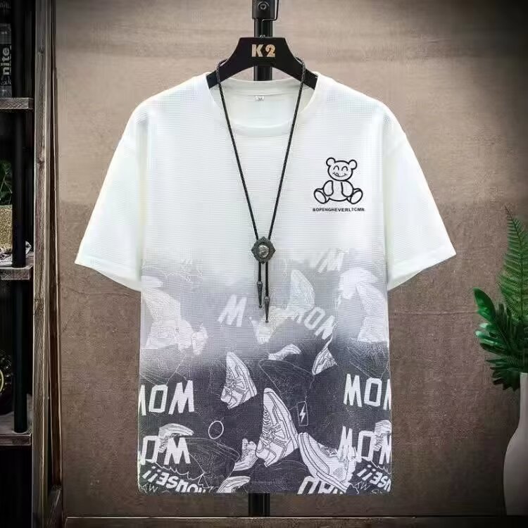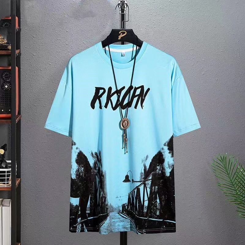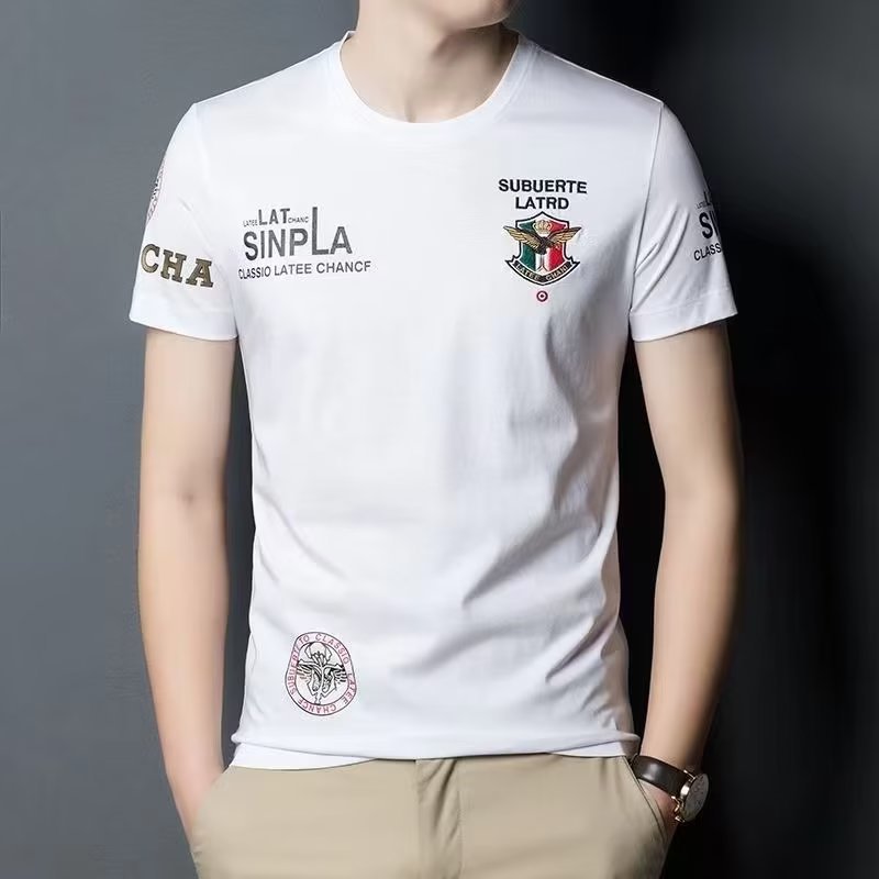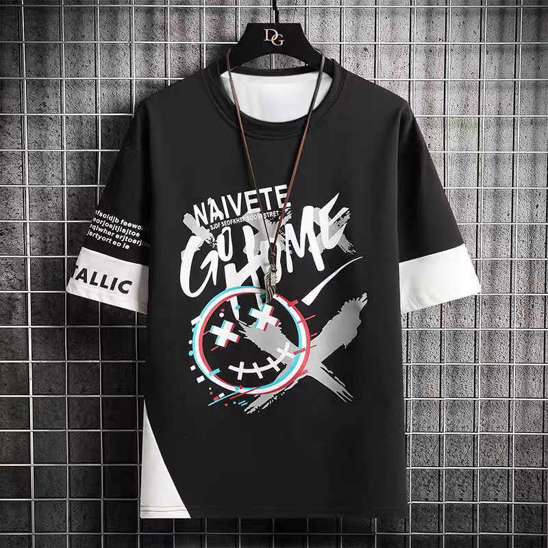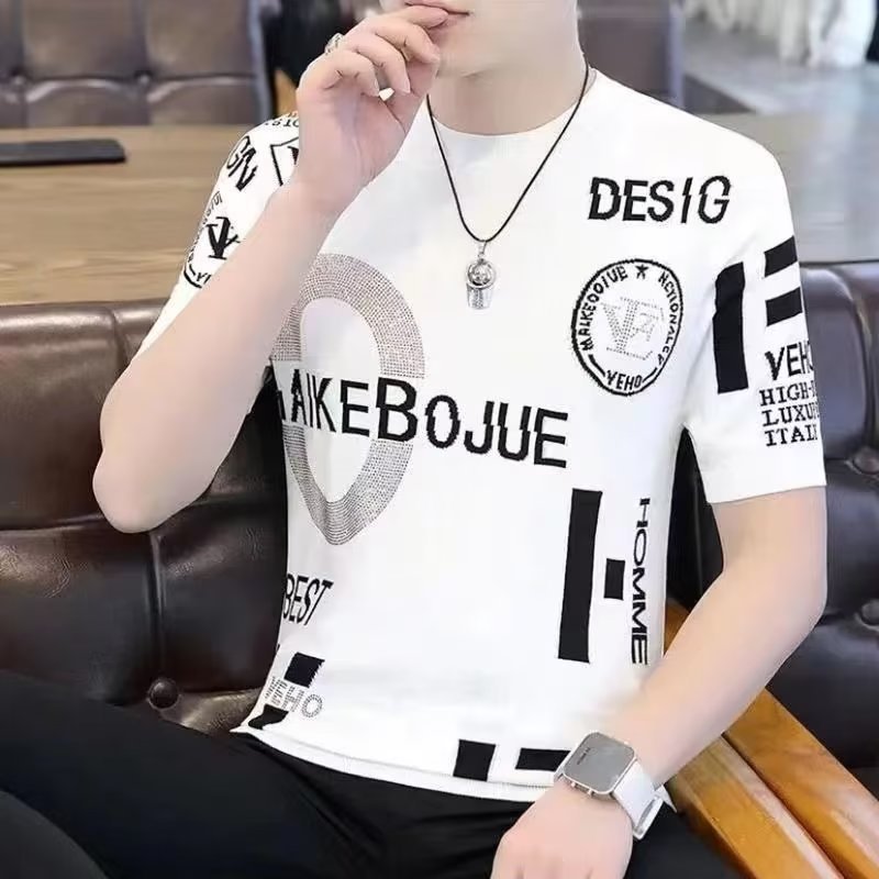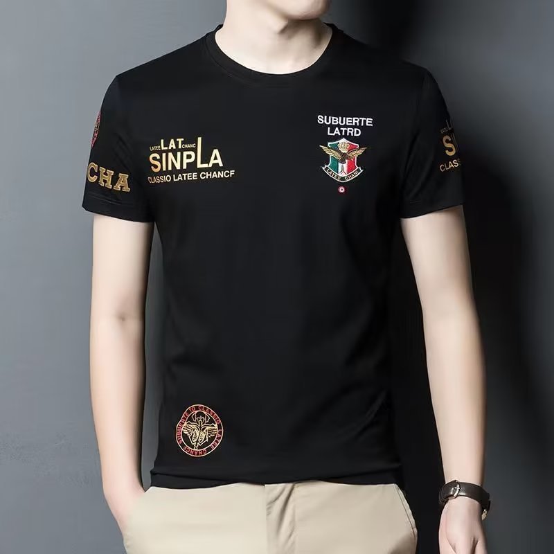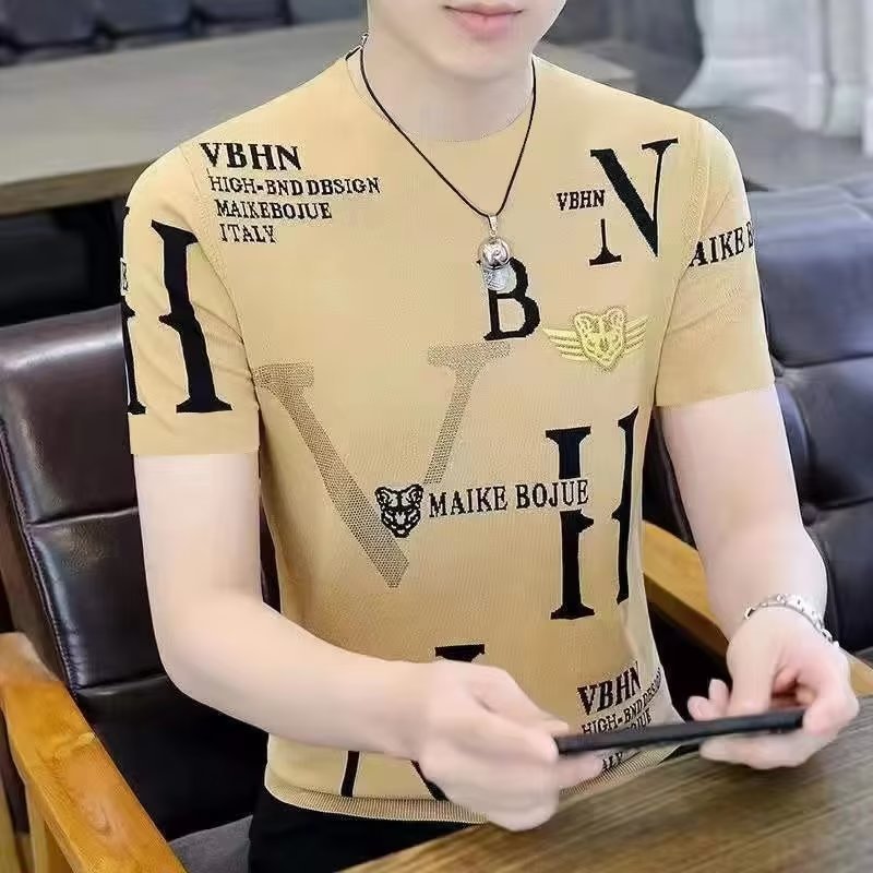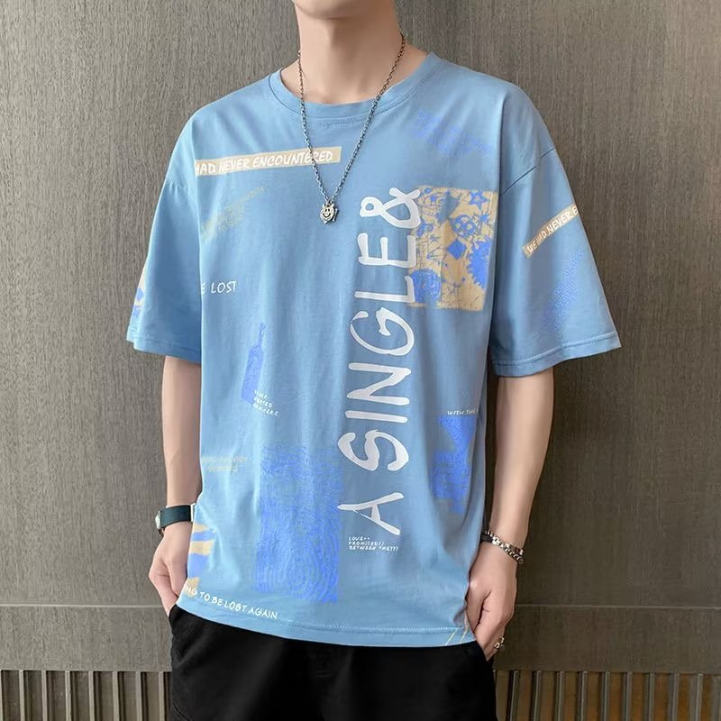 반팔 남성용 얇고 심플한 2025 티셔츠 새로운 루즈 라운드 넥 여름 인 트렌드 홍콩 스타일 학생 남성 노점 도매스토어 가기
