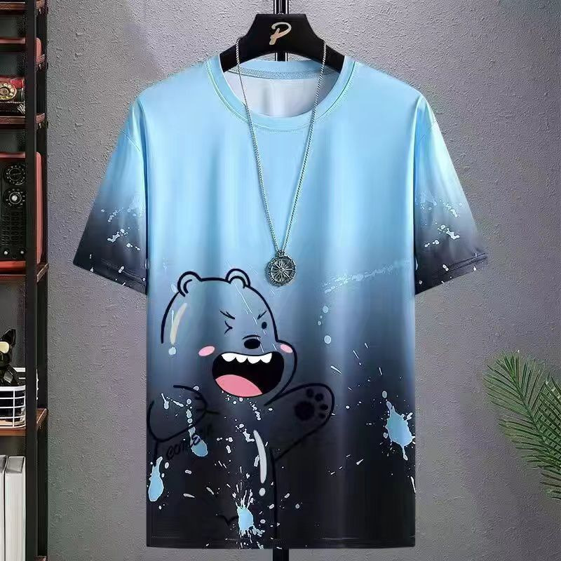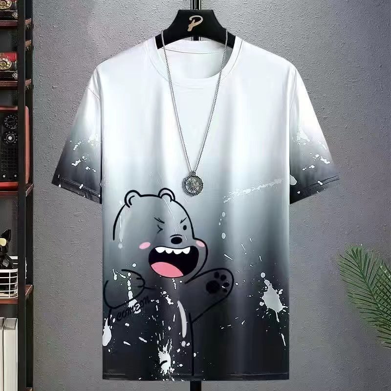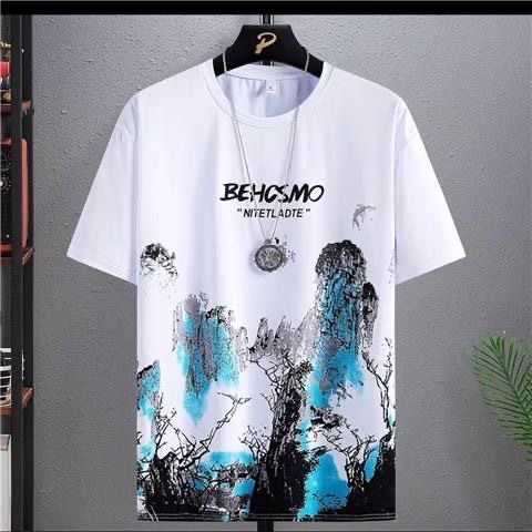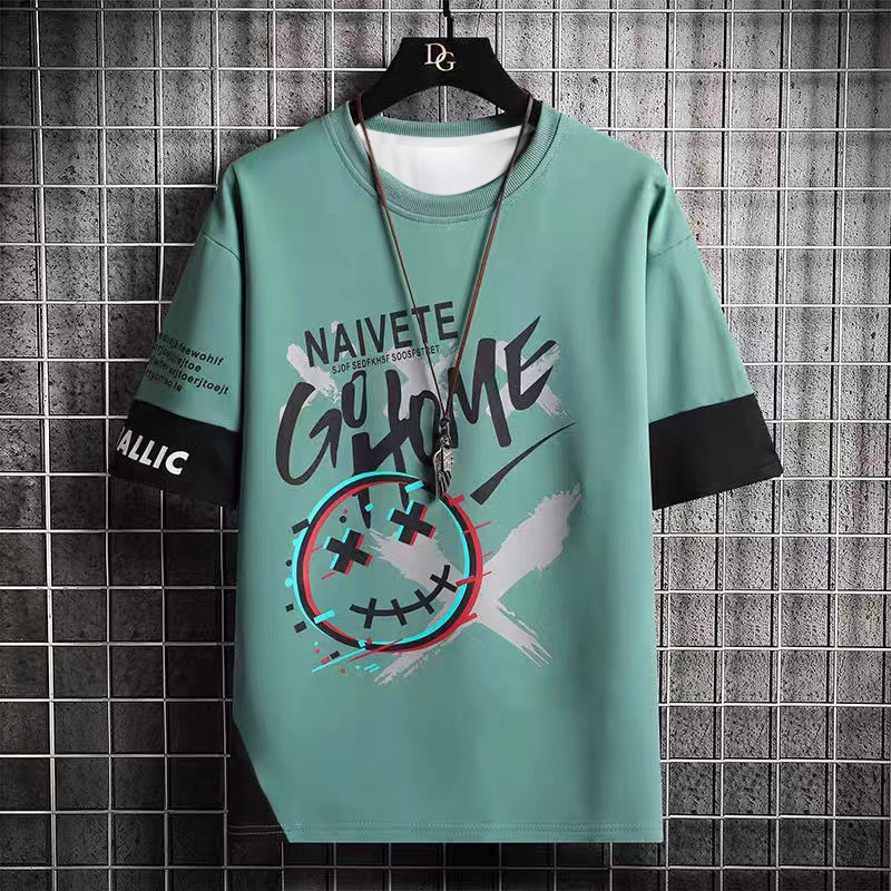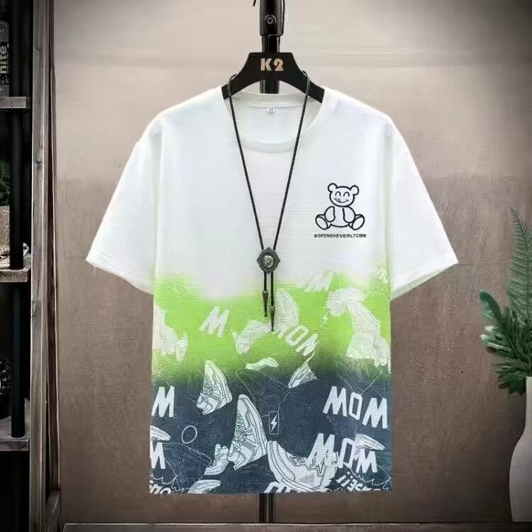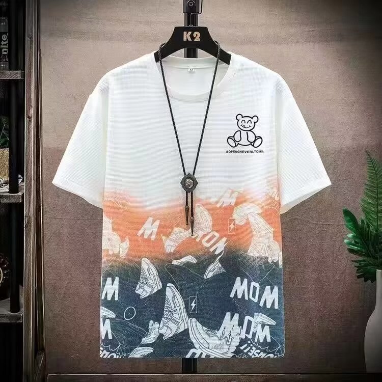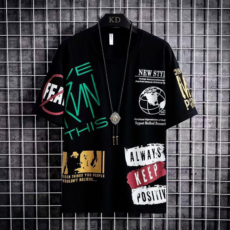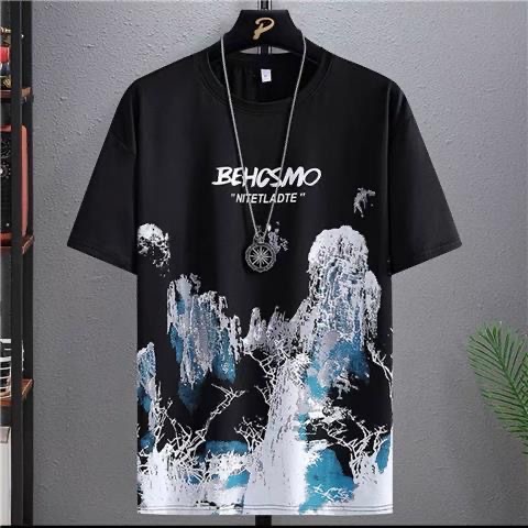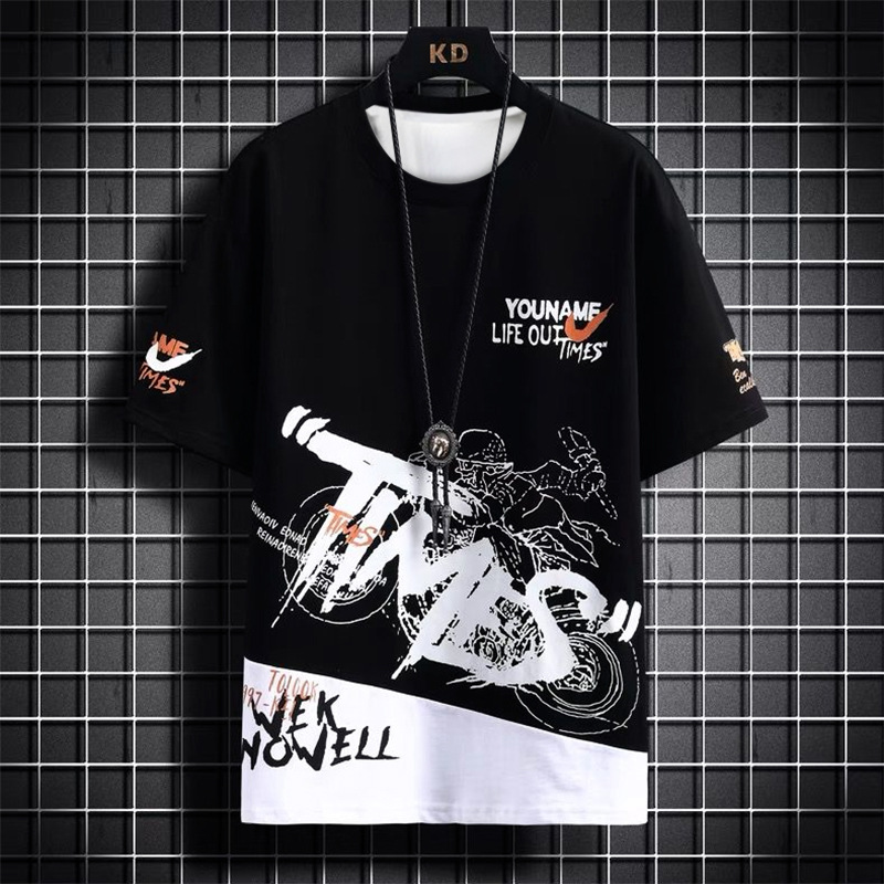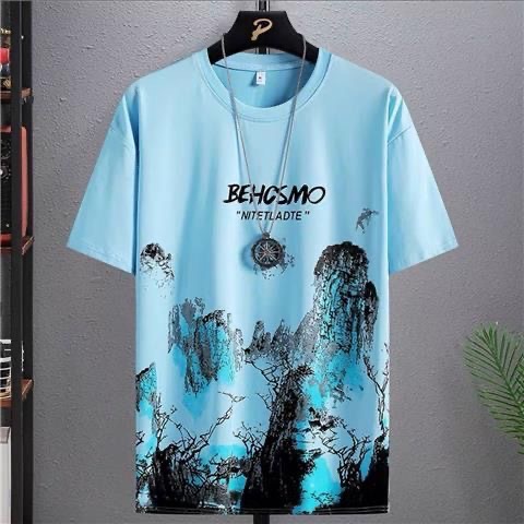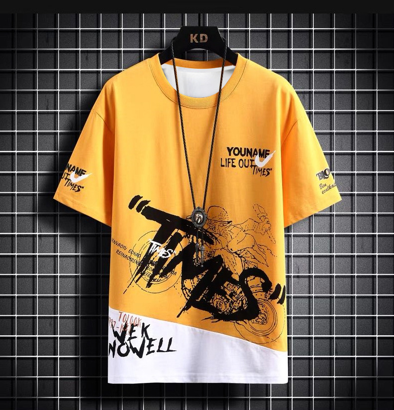 반팔 남성용 얇고 심플한 2025 티셔츠 새로운 루즈 라운드 넥 여름 인 트렌드 홍콩 스타일 학생 남성 노점 도매스토어 가기
