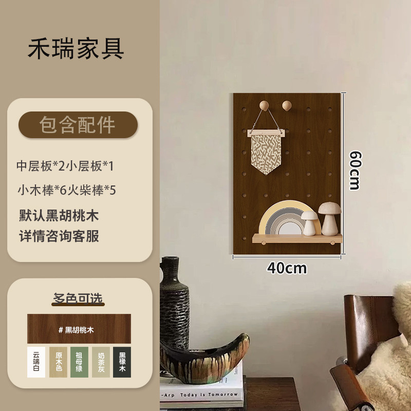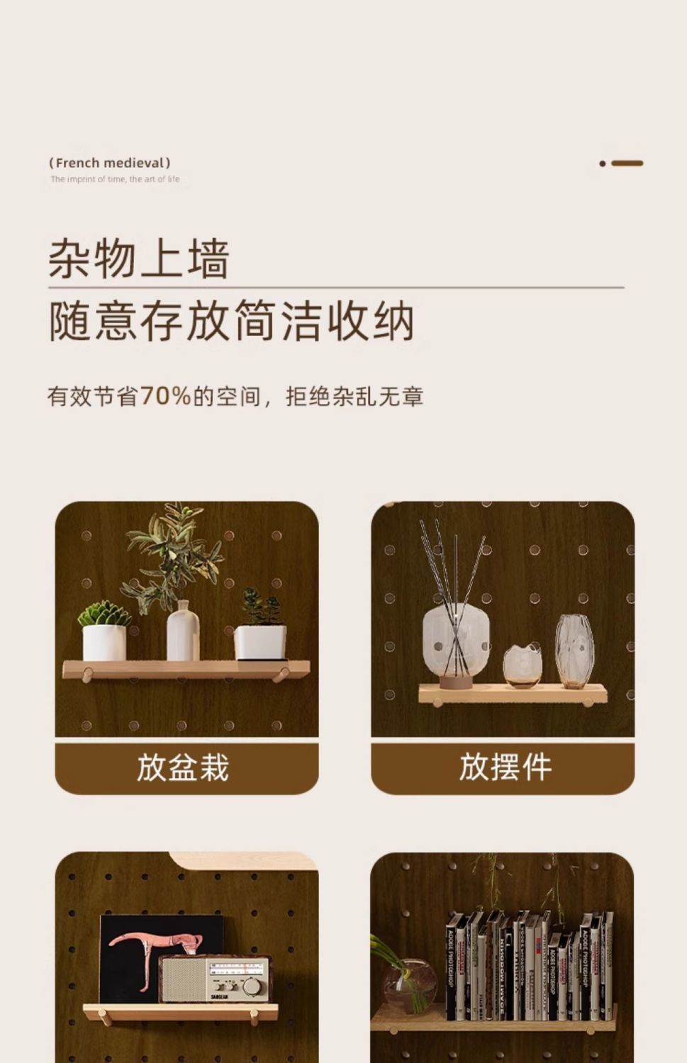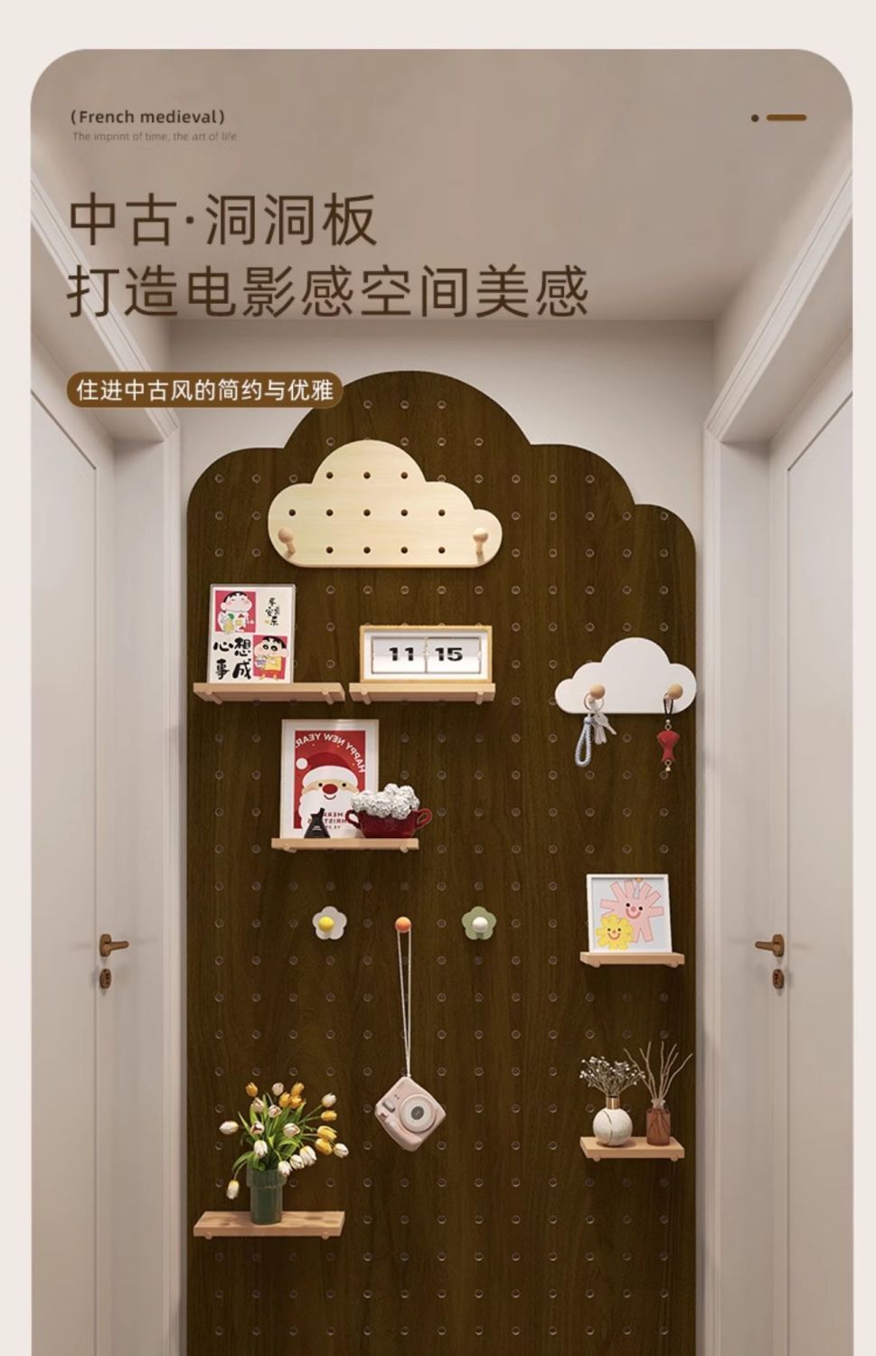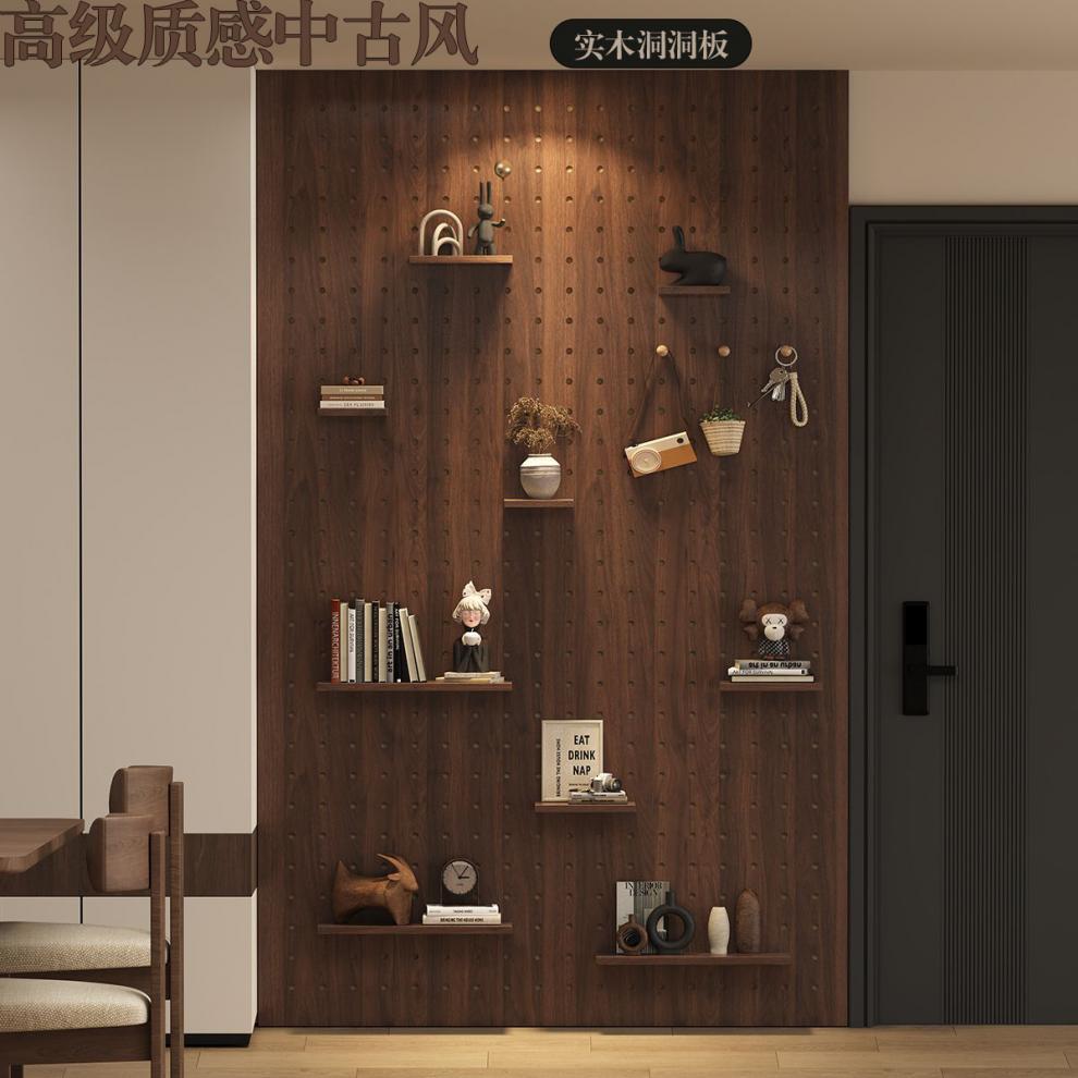 중세 스타일 단단한 나무 구멍 보드 벽 선반 입구 액세서리 책장 파티션 장식 스토리지 벽