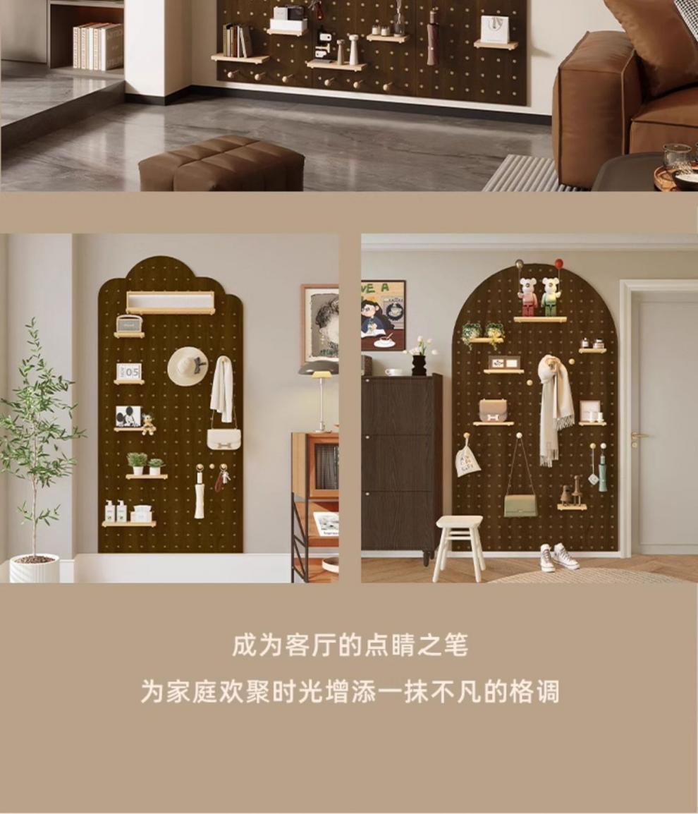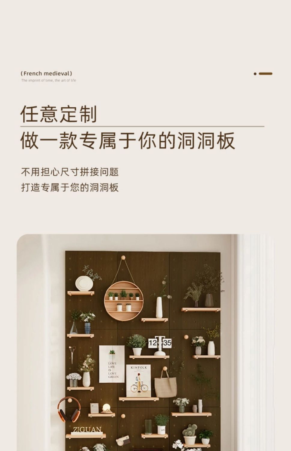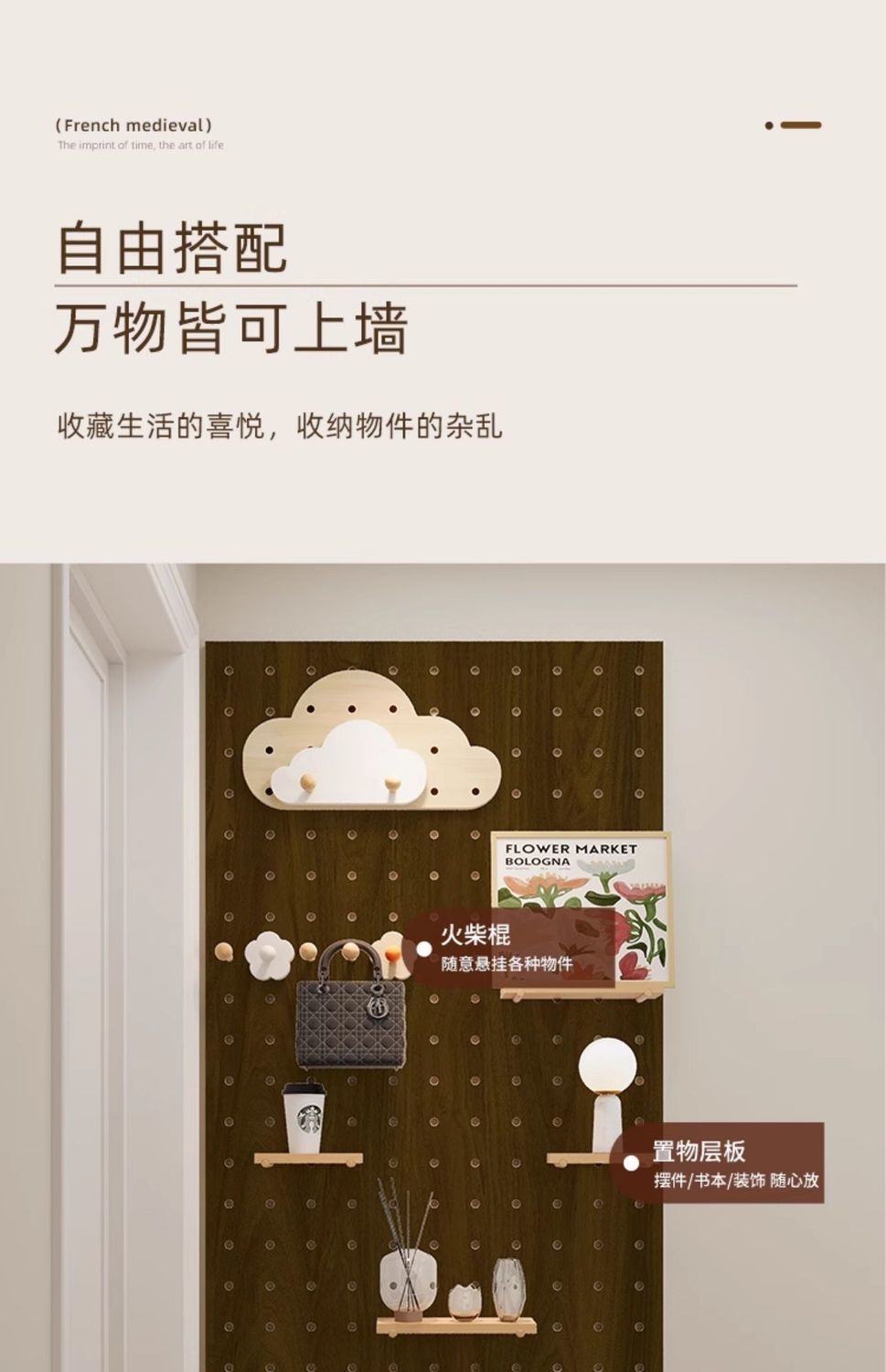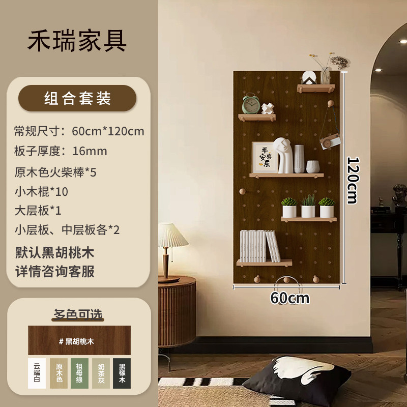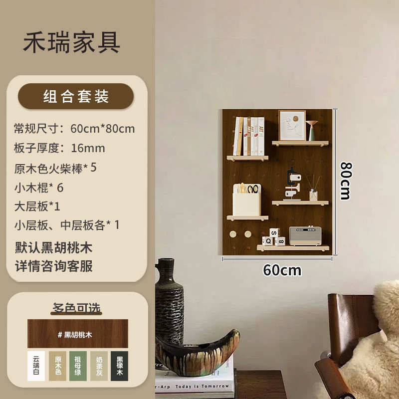 중세 스타일 단단한 나무 구멍 보드 벽 선반 입구 액세서리 책장 파티션 장식 스토리지 벽