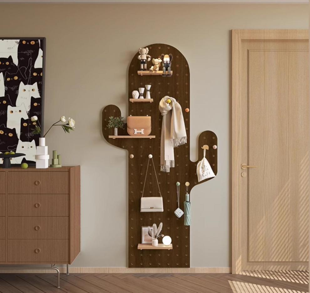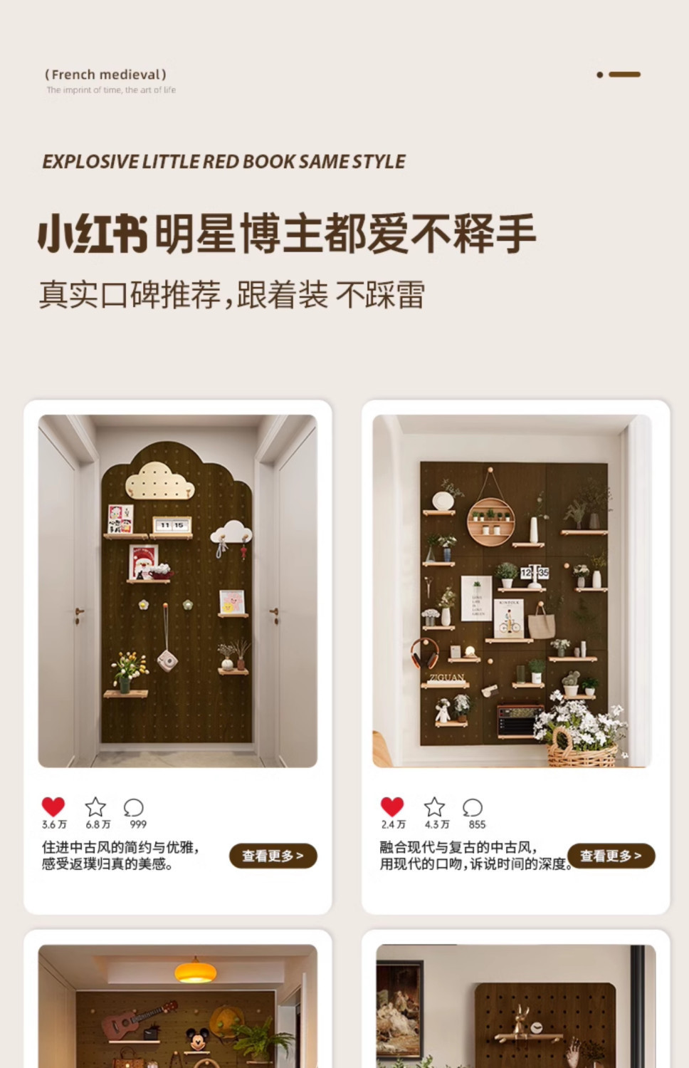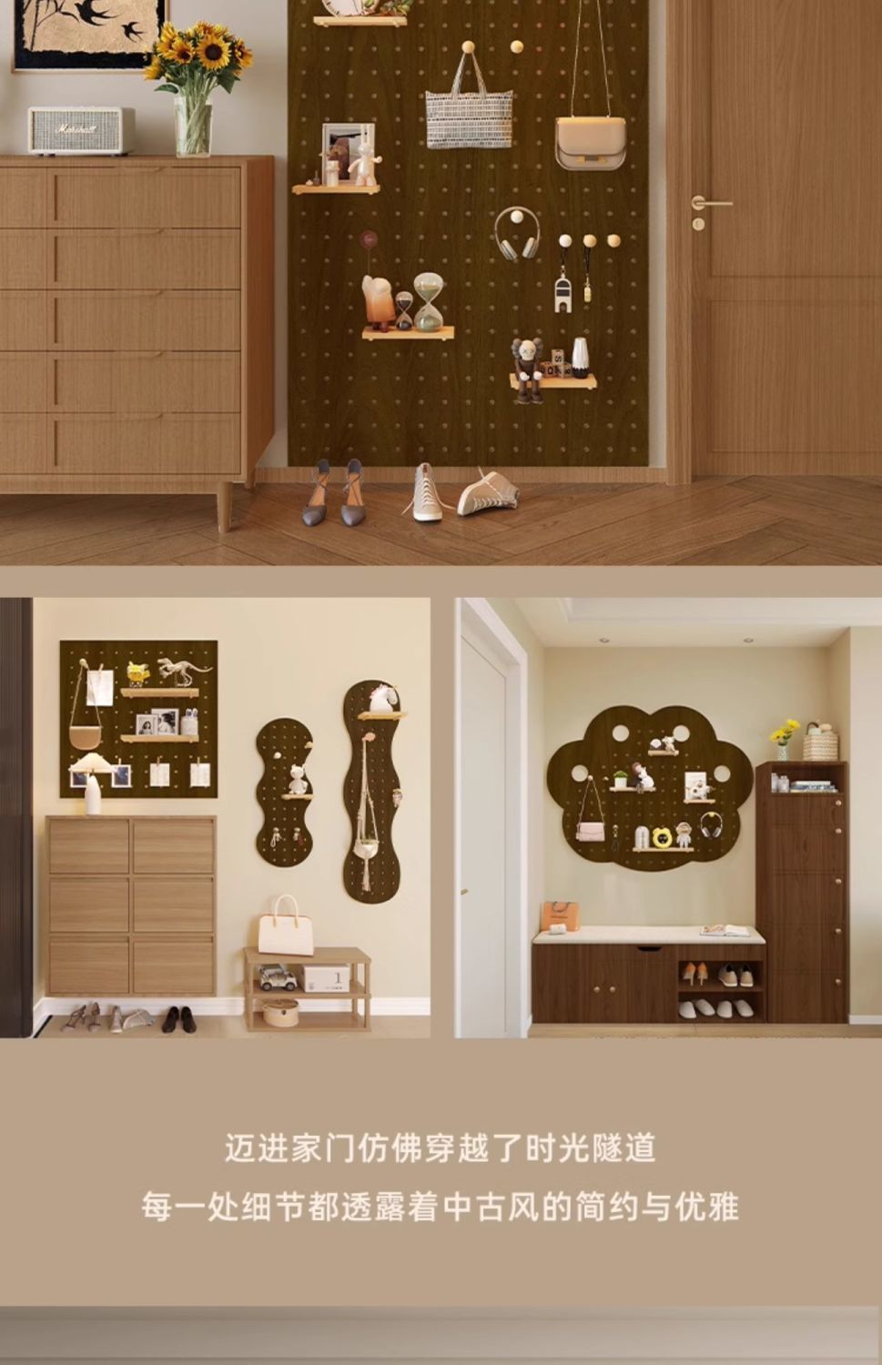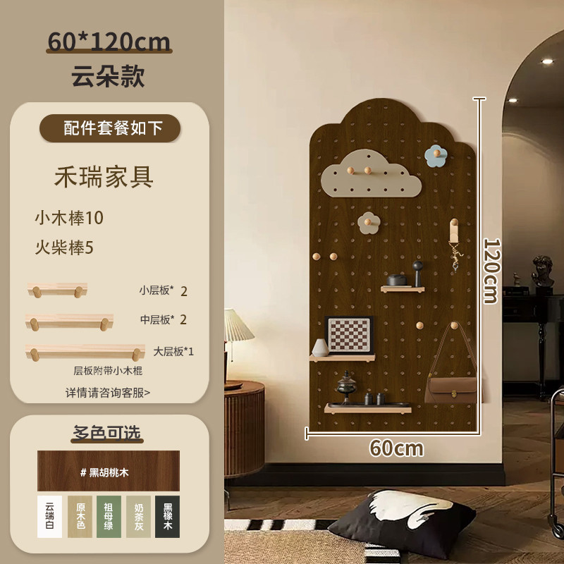 중세 스타일 단단한 나무 구멍 보드 벽 선반 입구 액세서리 책장 파티션 장식 스토리지 벽