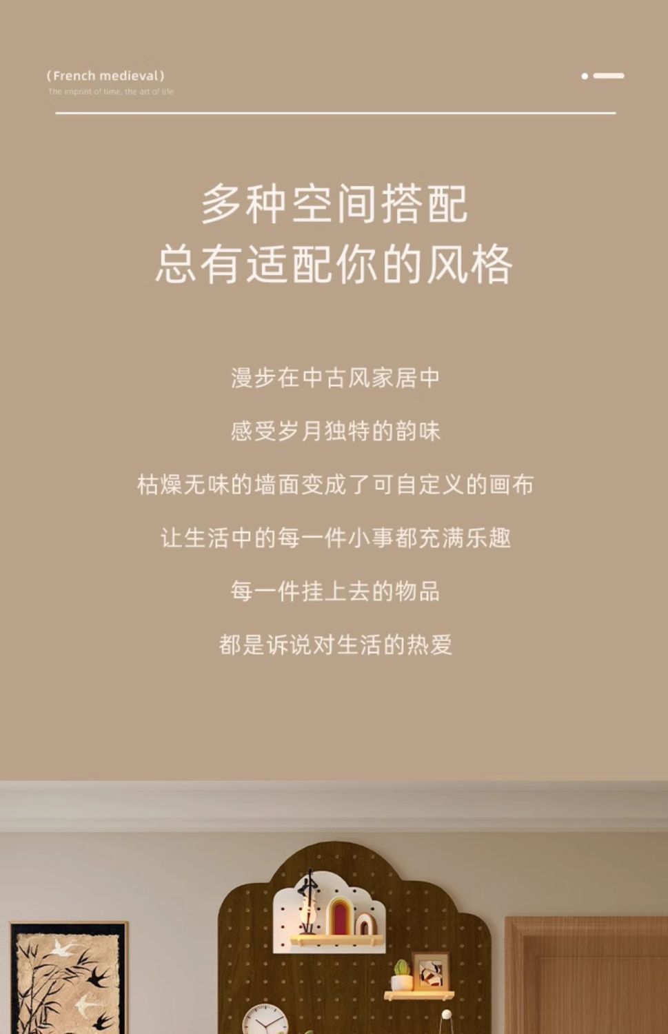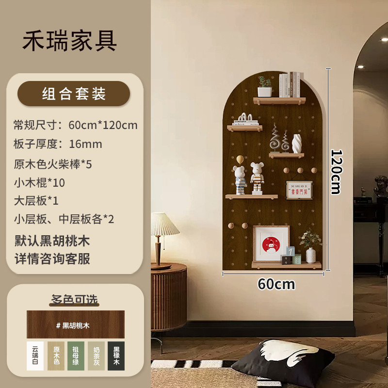 중세 스타일 단단한 나무 구멍 보드 벽 선반 입구 액세서리 책장 파티션 장식 스토리지 벽스토어 가기