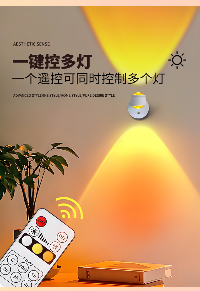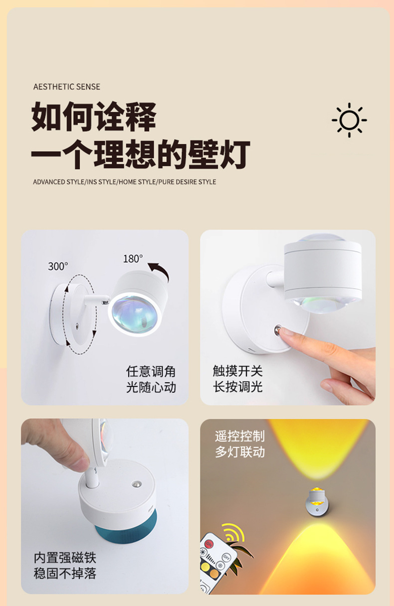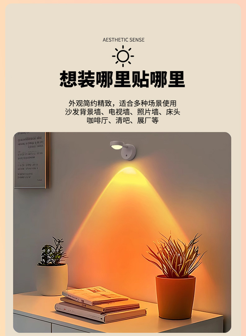 국경 간 침대 옆 램프 충전식 벽 램프 배선이 필요없는 벽 램프 벽 램프 분위기 램프 5V 자기 일몰 램프