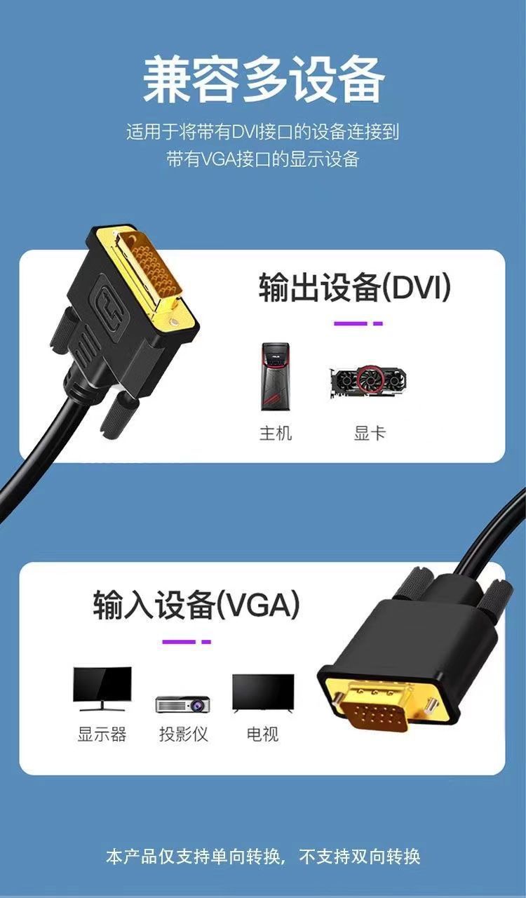 DVI-VGA 변환 케이블 24+1 남성-남성 컴퓨터 호스트 노트북-TV 디스플레이 프로젝션 변환기 연결