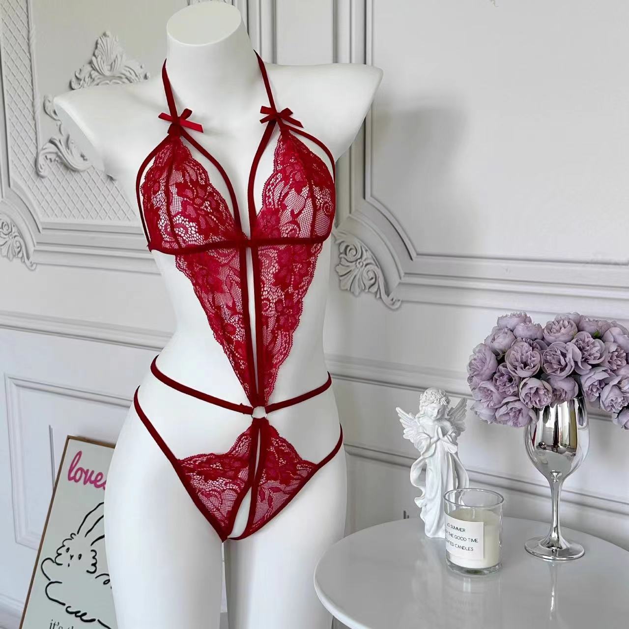 에로틱한 고양이 속옷, 여성스러운 레이스 자카드 버클 3점 핫 오픈 가랑이 점프수트 잠옷 9258스토어 가기