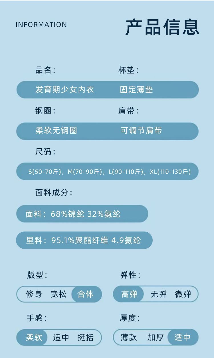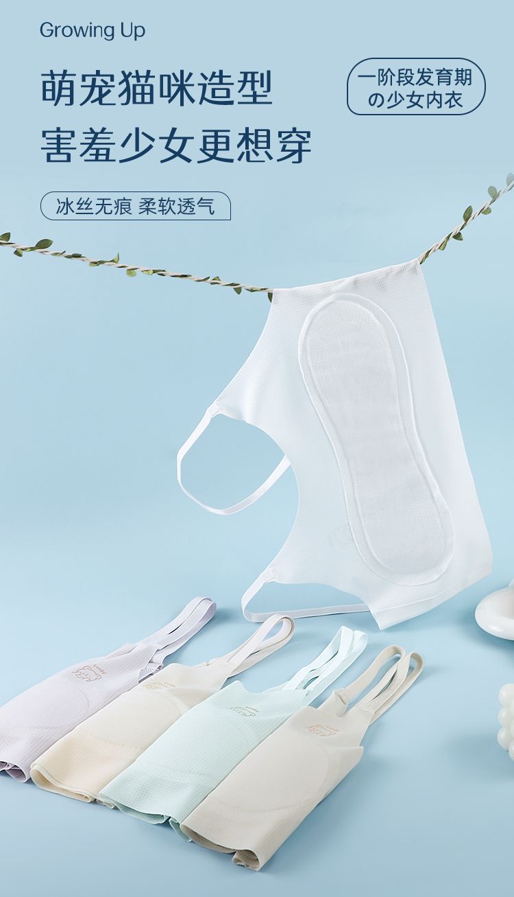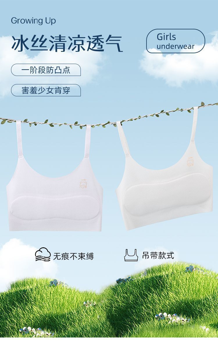 여아 속옷 7-16세 발달기 어린이 여름 실크 무봉제 속옷 학생용 돌출 방지 통기성 얇은 스타일스토어 가기
