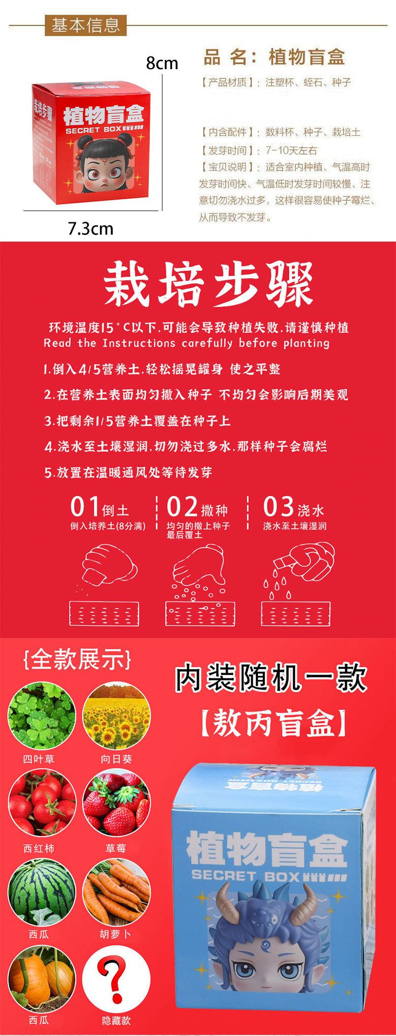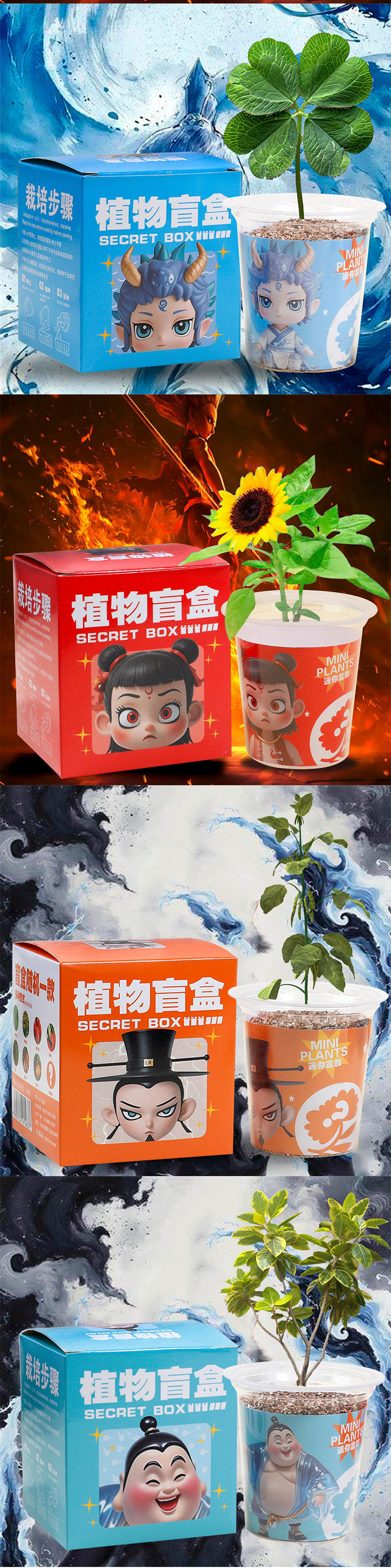크리 에이 티브 블라인드 박스 Nezha 화분 실내 데스크탑 작은 녹색 식물 패턴은 어린이가 DIY 식물을 심고 관찰할 수 있습니다. 선물 화분스토어 가기