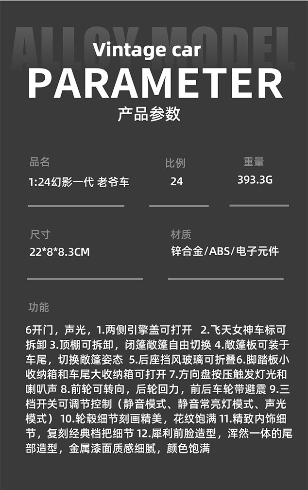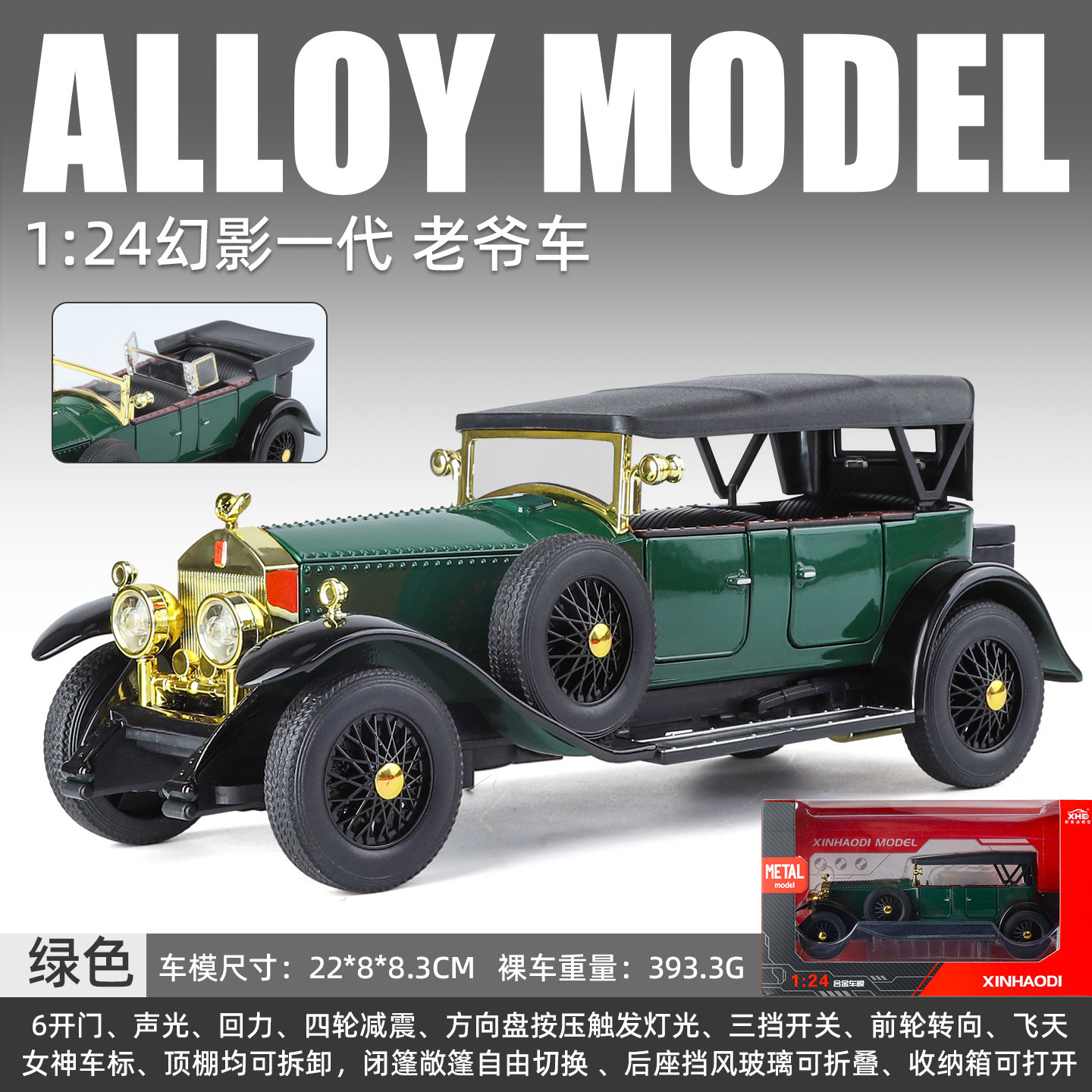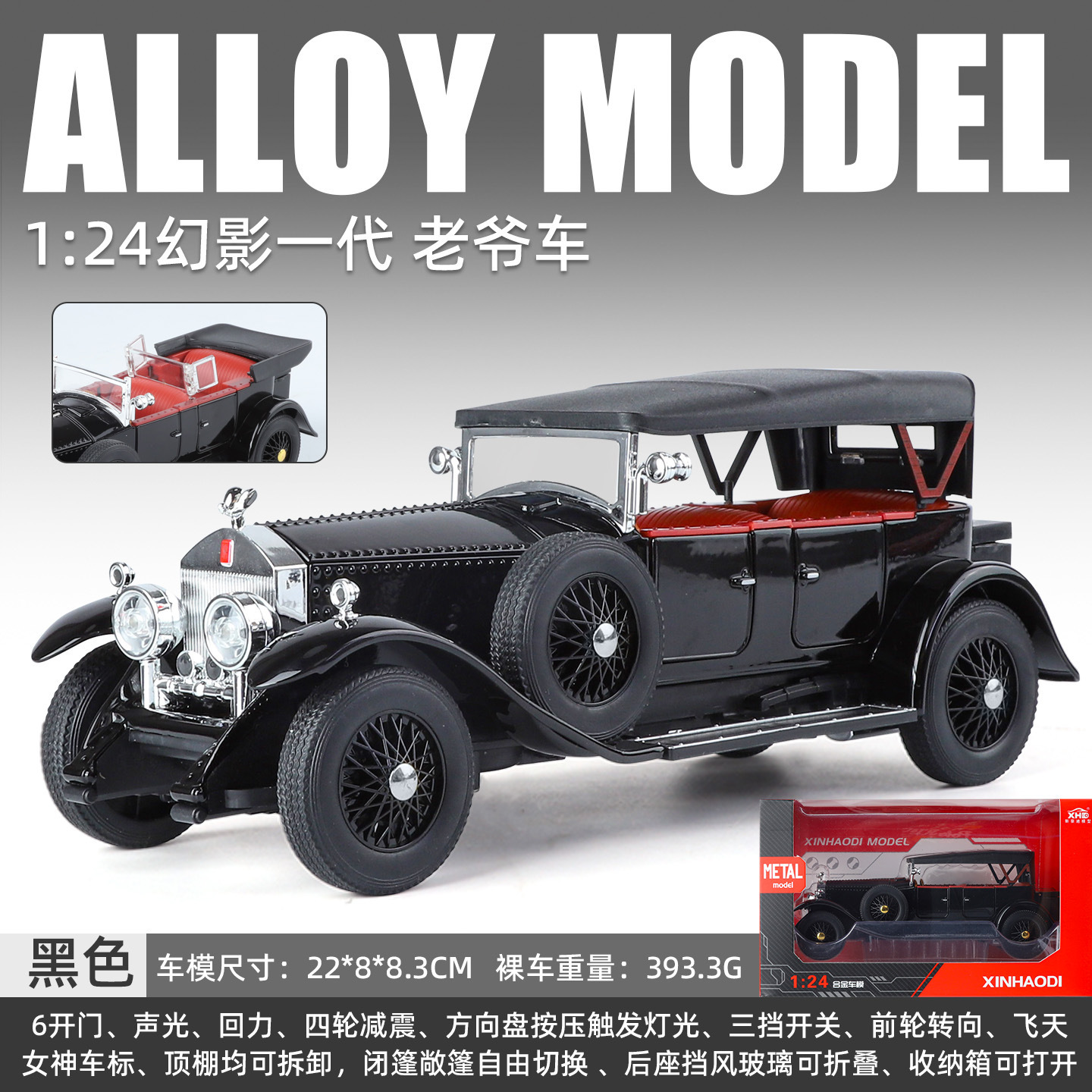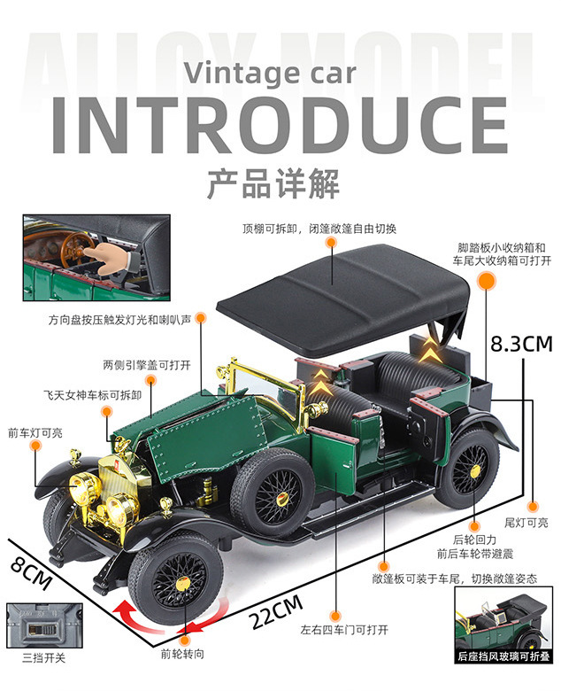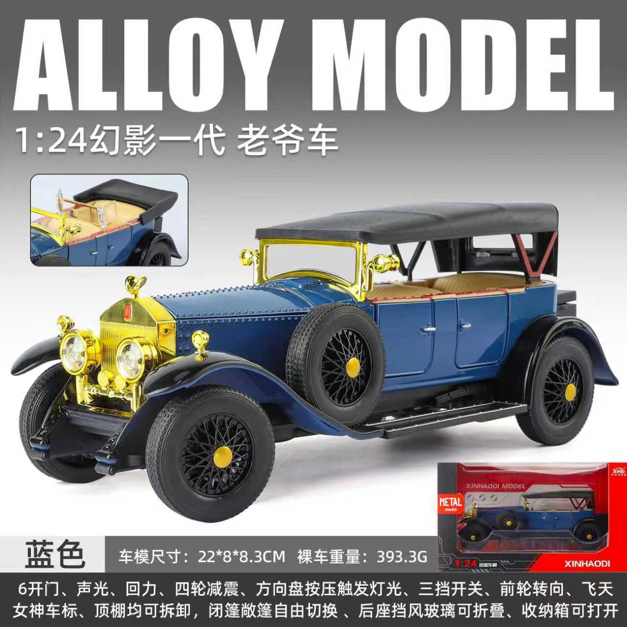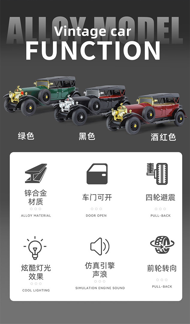 새로운 Haodi 합금 자동차 모델 1:24 팬텀 1 세대 레트로 클래식 자동차 소리와 빛 풀백 장난감 모델 장식품 Dropshipping