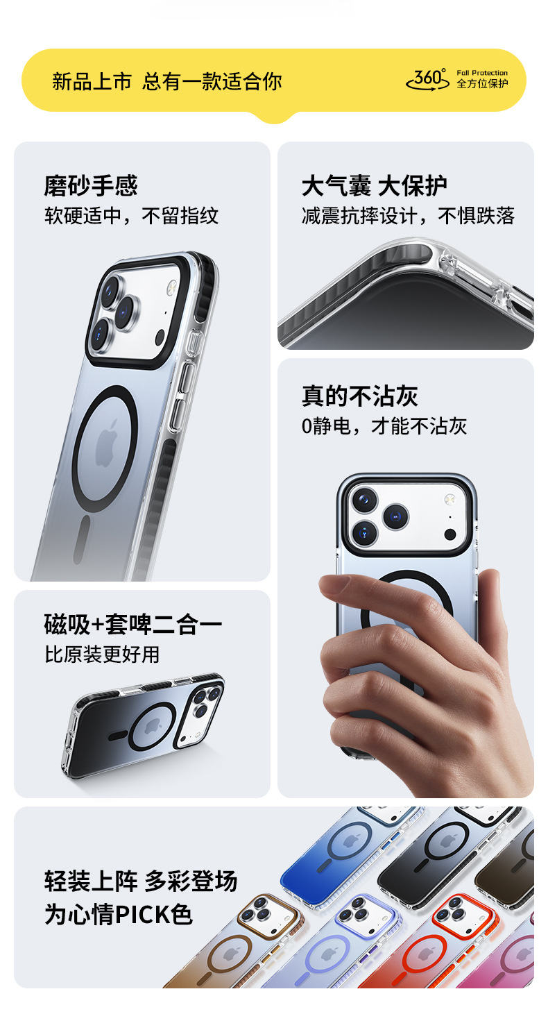 Apple 17ProMax 블루 라이트 그라데이션 케이스에 적합 17Air 반투명 낙하 방지 iPhone17 자기 보호 케이스스토어 가기