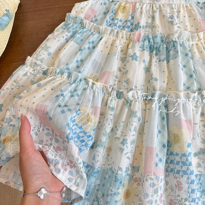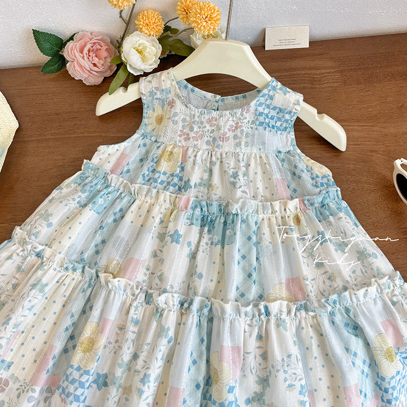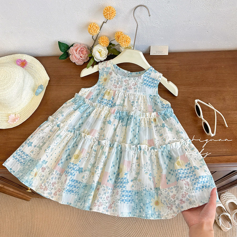 여자 여름 새로운 민소매 꽃 드레스 아기 소녀 한국어 달콤한 캐주얼 조끼 스커트 패션 아동 의류스토어 가기