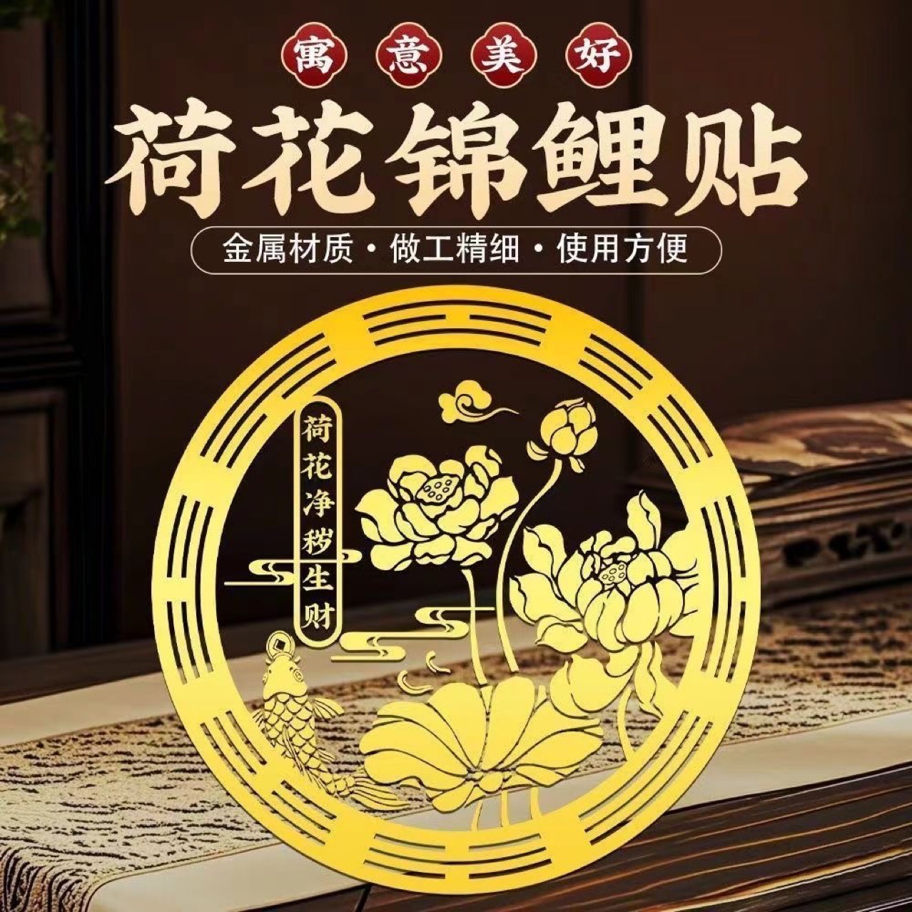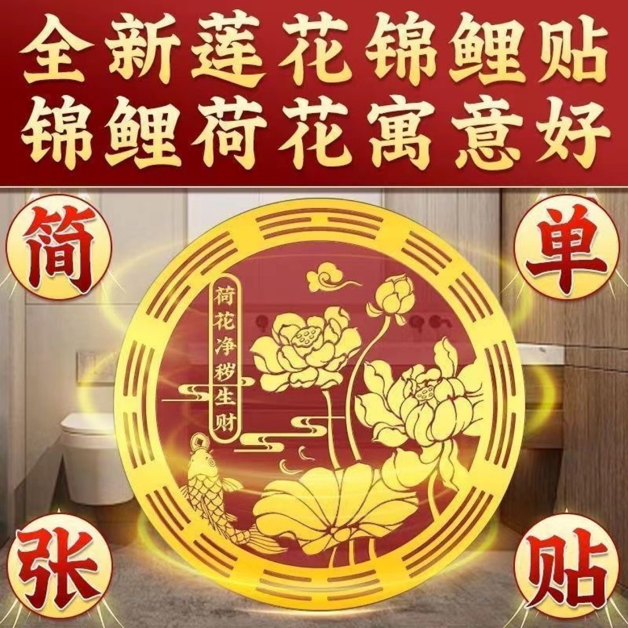 [행운을 빕니다] 욕실 벽 스티커, 금속 스티커, 잉어 연꽃, 휴대폰 스티커, 신발장, 욕실 연꽃스토어 가기