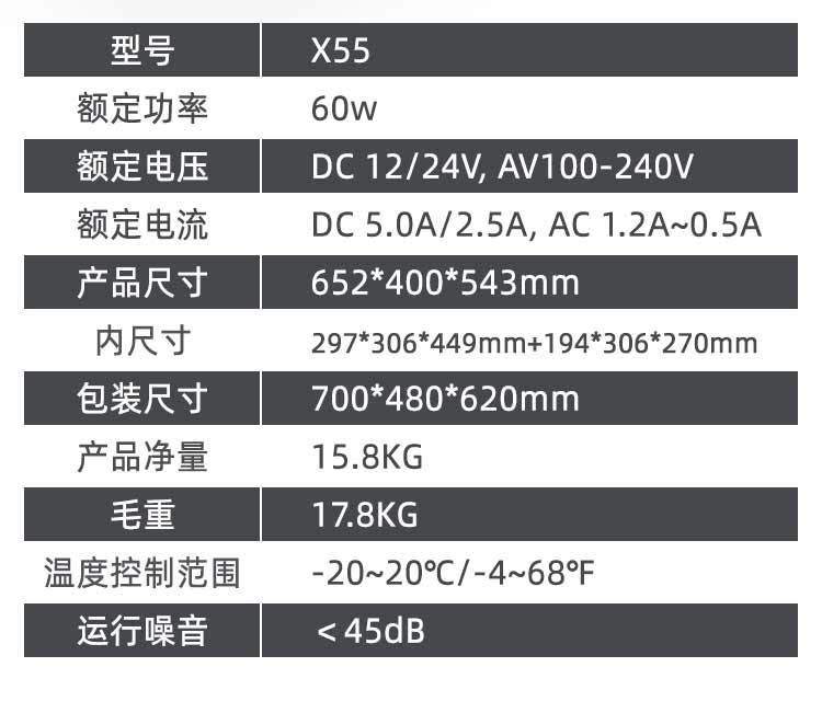 컴프레서 냉장고 55리터 대용량 다중 사양 냉동차 가정 겸용 12V24V 트럭 야외 차량용 냉장고