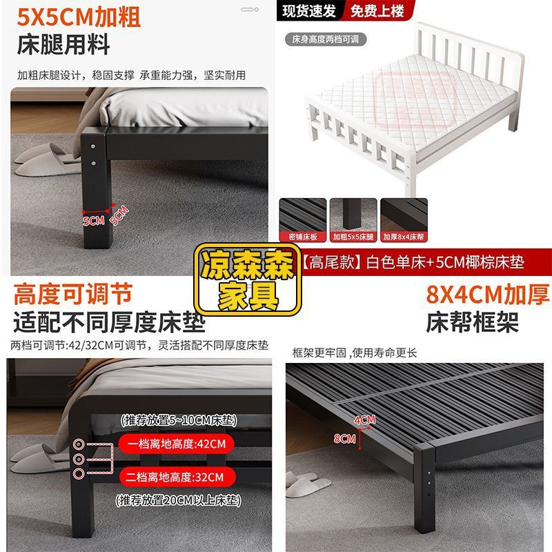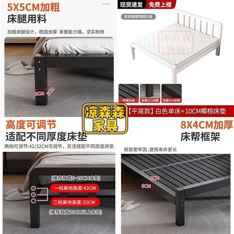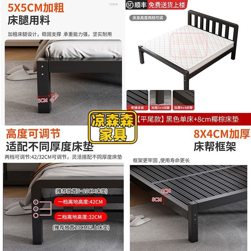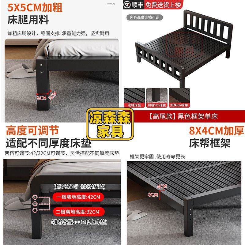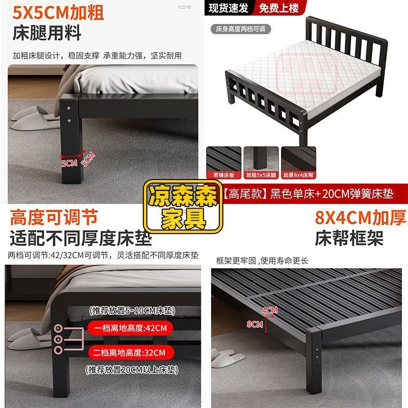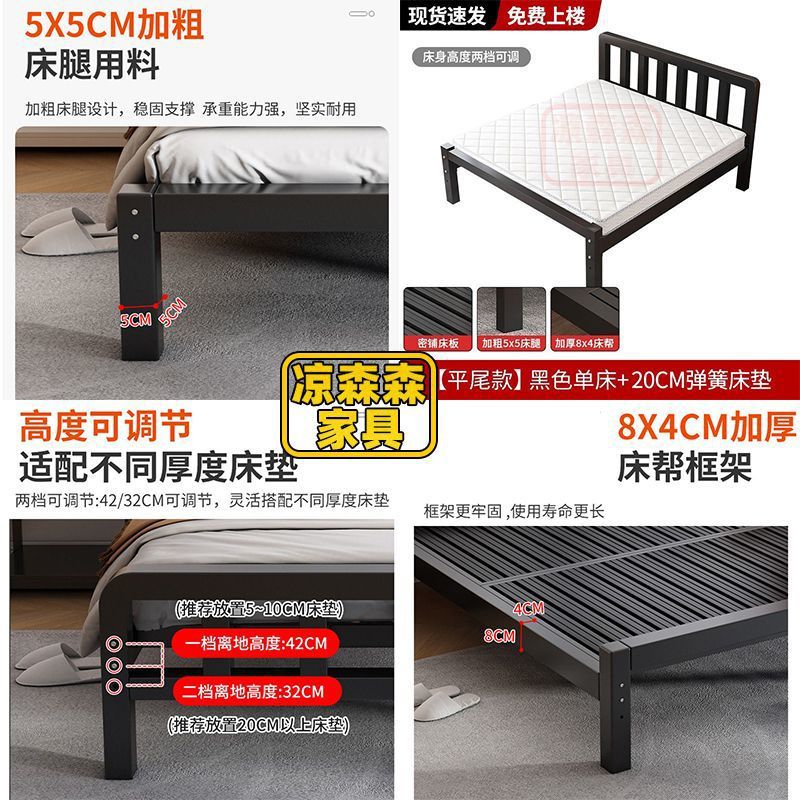 가정용 철제 침대, 스테인레스 스틸 침대, 두꺼운 철제 침대, 임대 주택, 보조 침실 철제 프레임 침대, 두꺼운 현대식 간단한 임대 침대