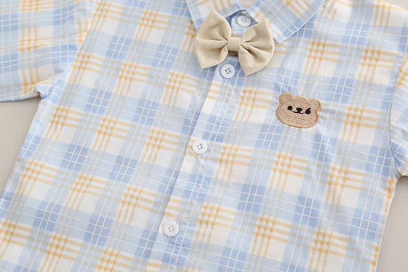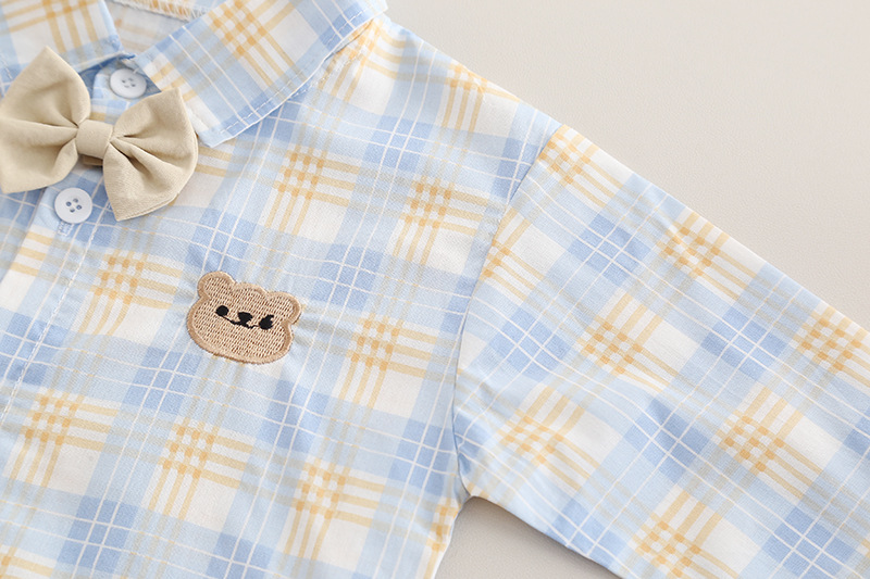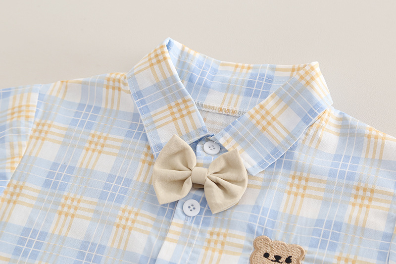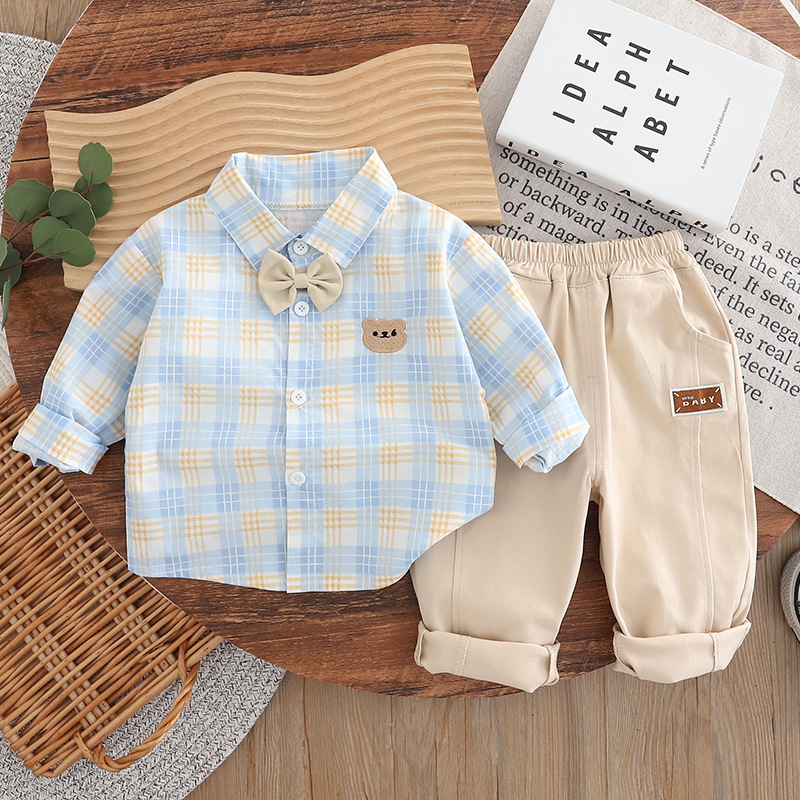 2025 가을 대외 무역 새로운 스타일 소년 나비 넥타이 격자 무늬 셔츠 긴팔 양복 아기 소년 캐주얼 바지 투피스 세트스토어 가기