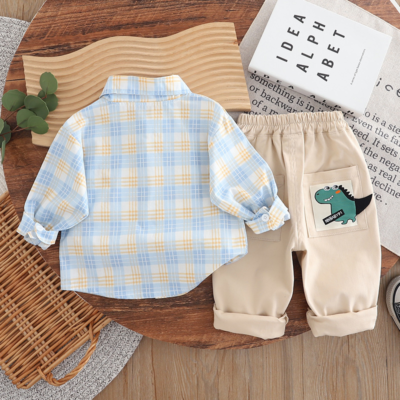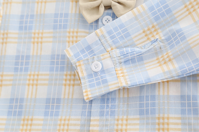 2025 가을 대외 무역 새로운 스타일 소년 나비 넥타이 격자 무늬 셔츠 긴팔 양복 아기 소년 캐주얼 바지 투피스 세트