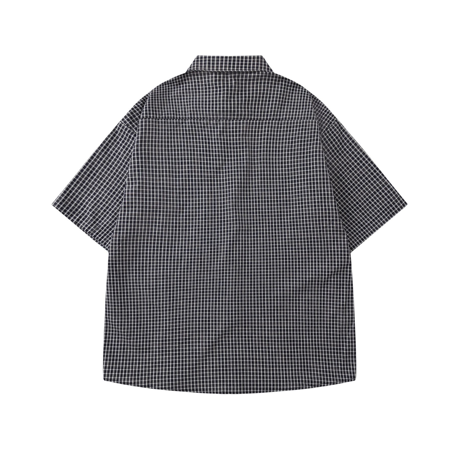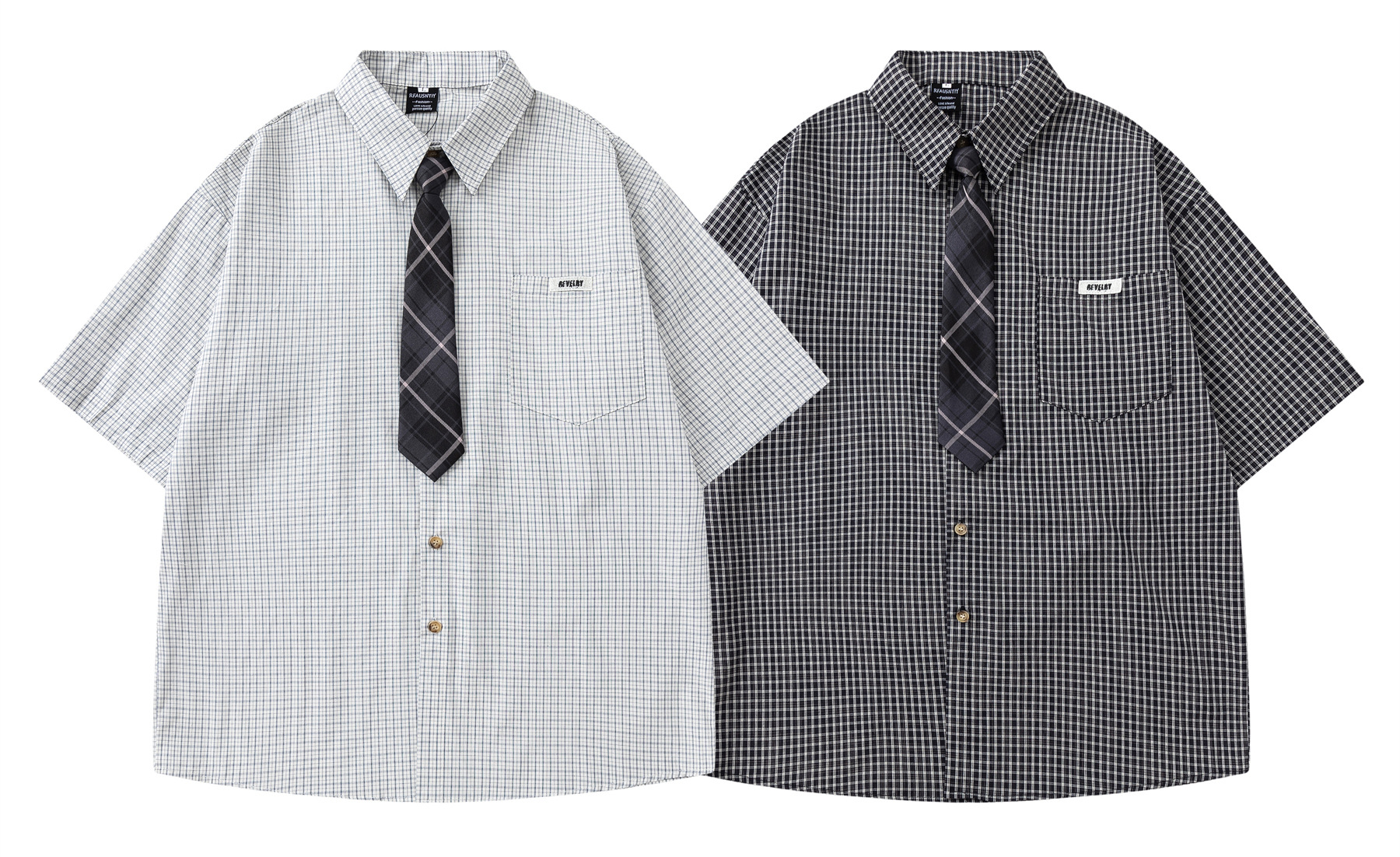 일본 복고풍 격자 무늬 넥타이 반팔 셔츠 남성 여름 대학 스타일 커플 격자 무늬 느슨한 캐주얼 트렌디 셔츠스토어 가기
