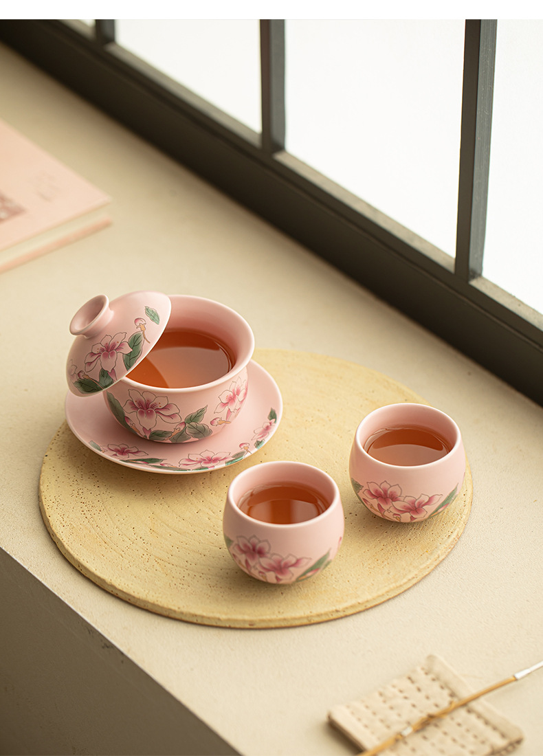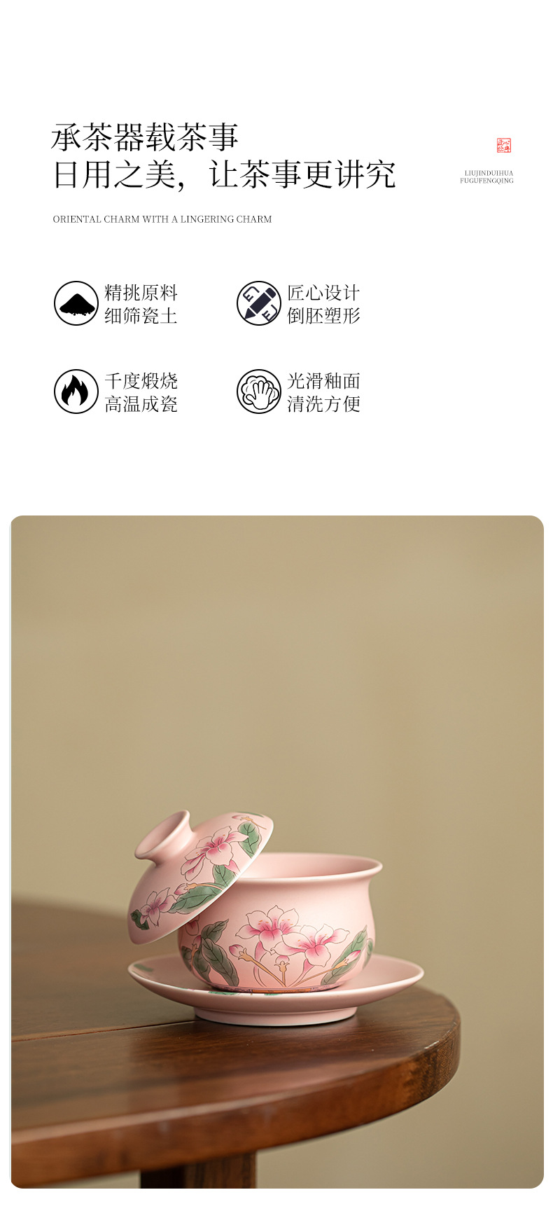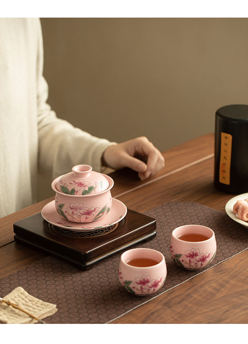 파스텔 연꽃 호버링 커버 그릇 Sancai 차 그릇 천 가방 커버 그릇 세라믹 차 세트 대용량 차 그릇 쿵푸 차스토어 가기