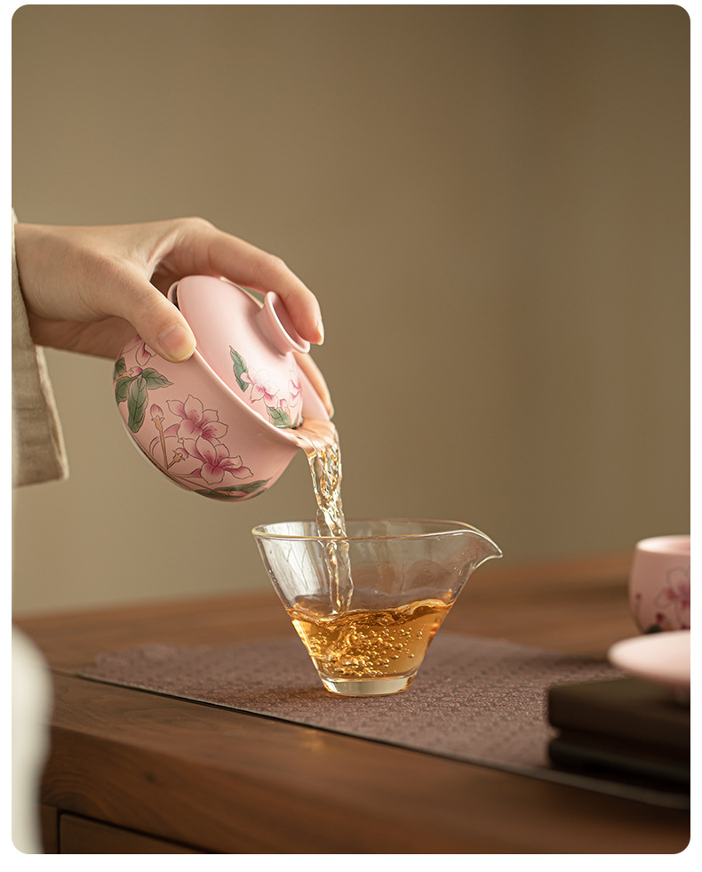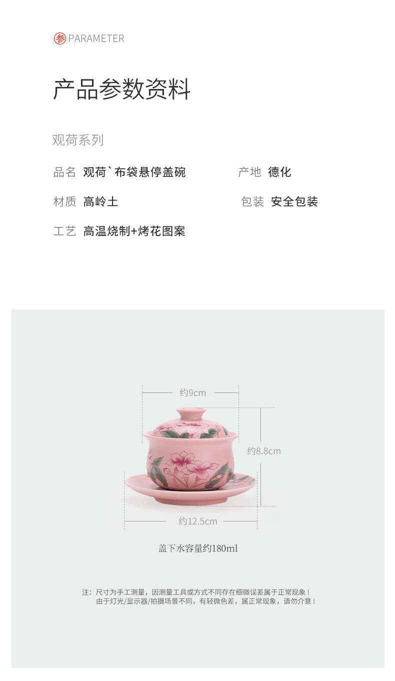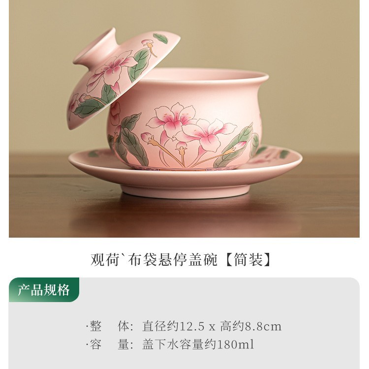 파스텔 연꽃 호버링 커버 그릇 Sancai 차 그릇 천 가방 커버 그릇 세라믹 차 세트 대용량 차 그릇 쿵푸 차