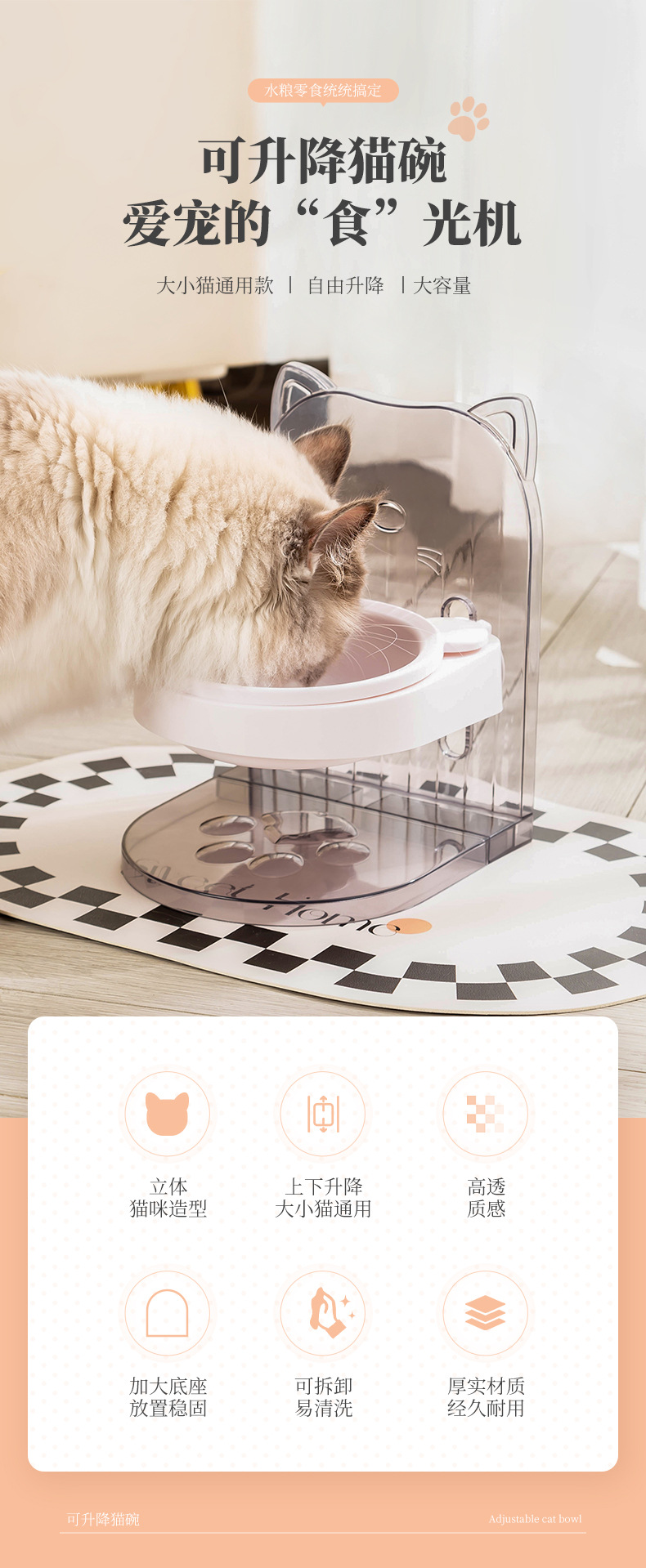 고양이 그릇, 고양이 목 보호대, 높이 조절 가능한 식수 공급기, 개 플라스틱 리프팅 개 그릇, 애완 동물 용품스토어 가기