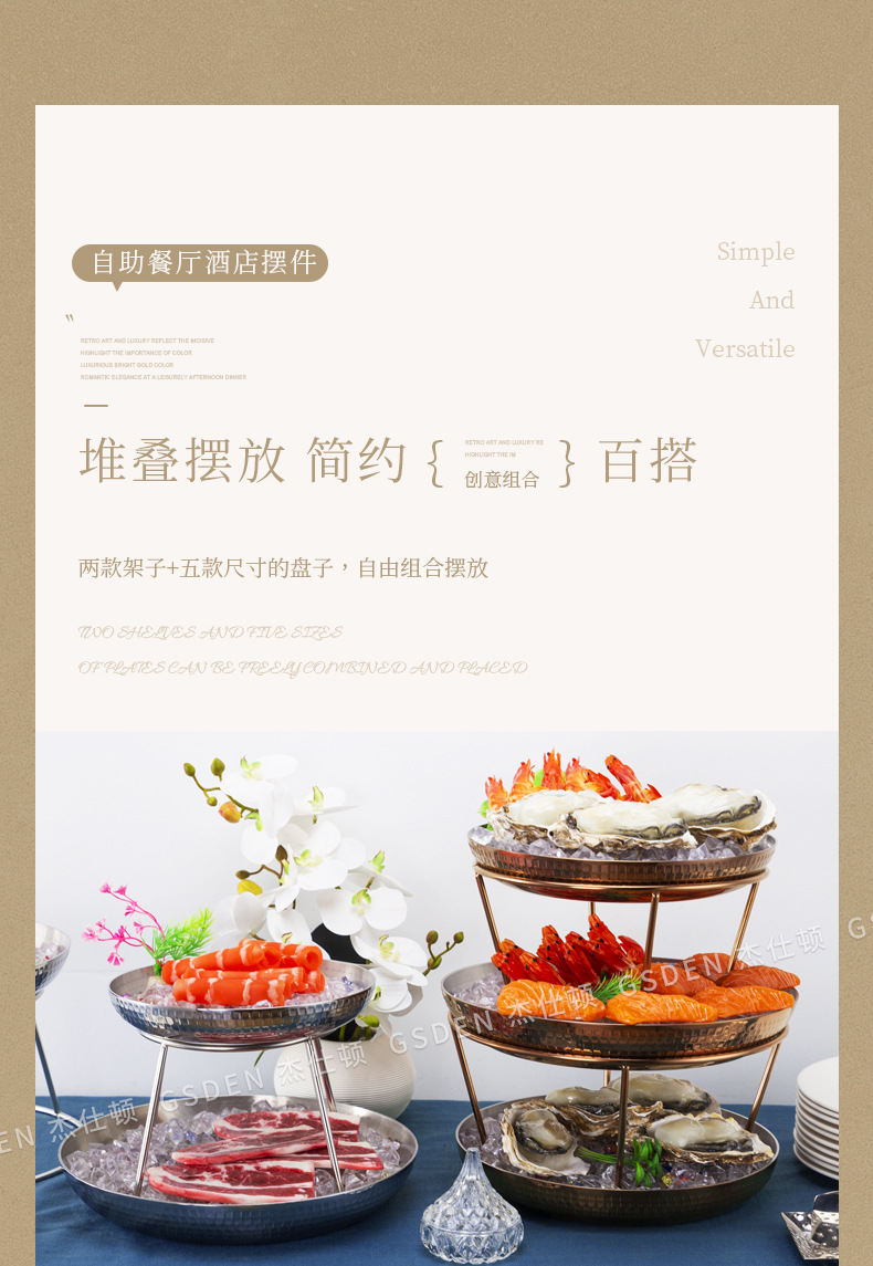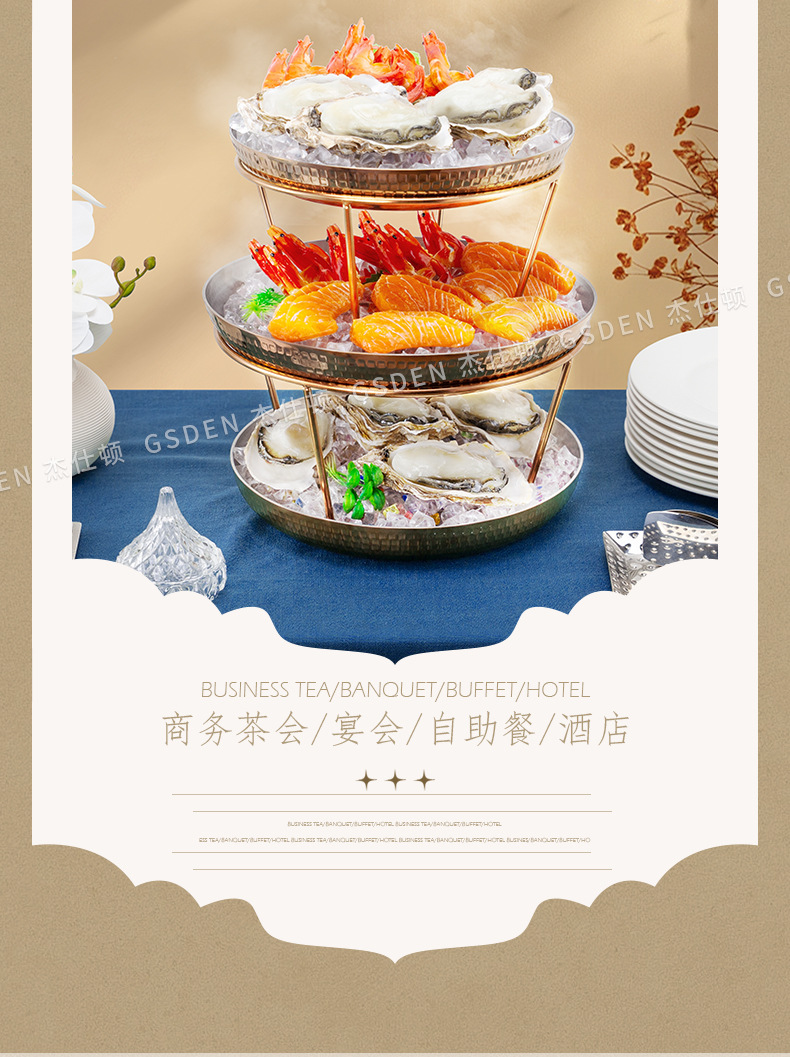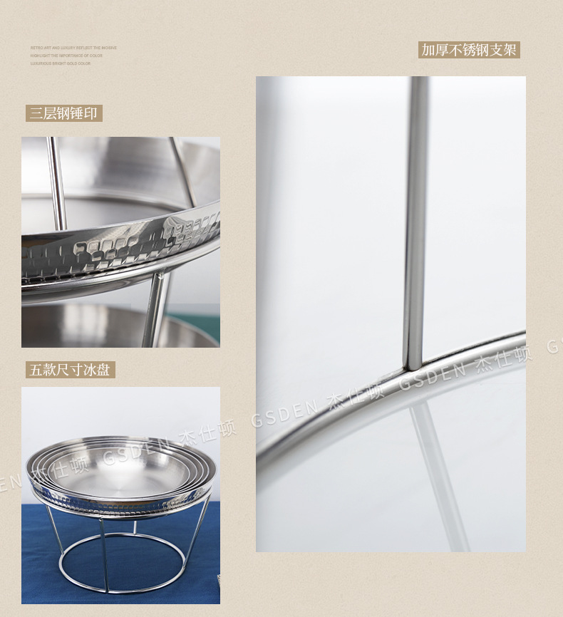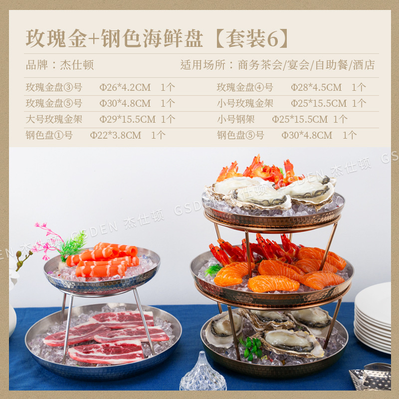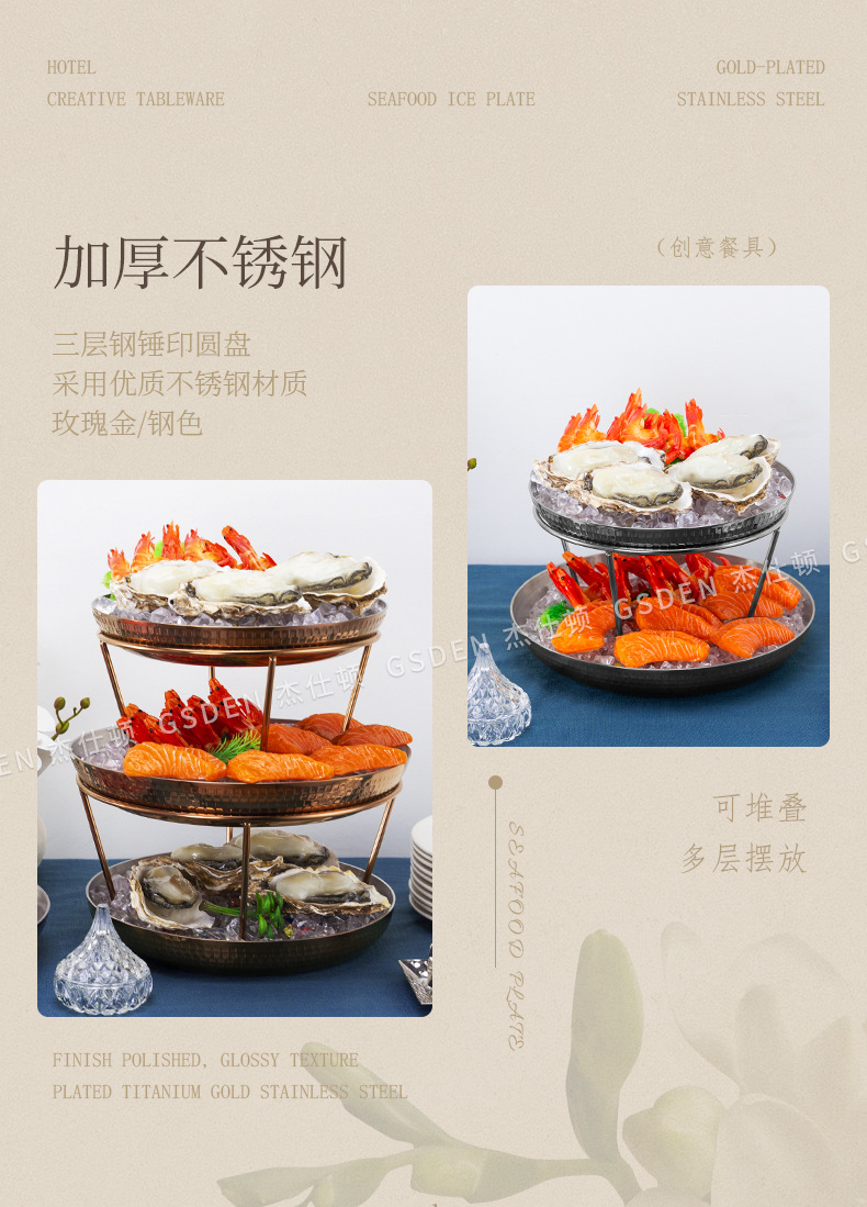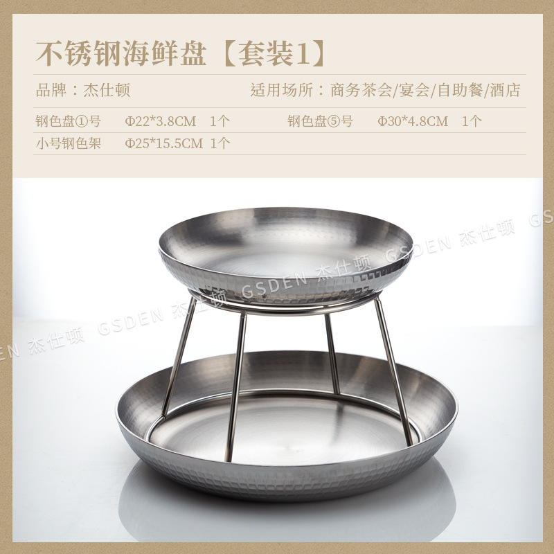 도매 스테인리스 해산물 접시 이중층 굴 새우 게 접시 냉장 일본식 아이스 접시 뷔페 과일 접시 진열대