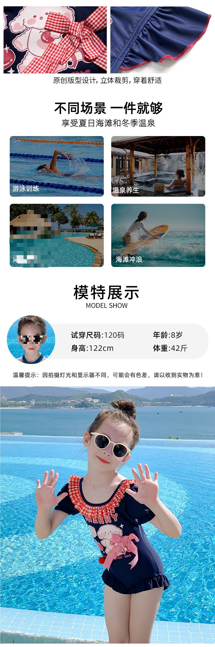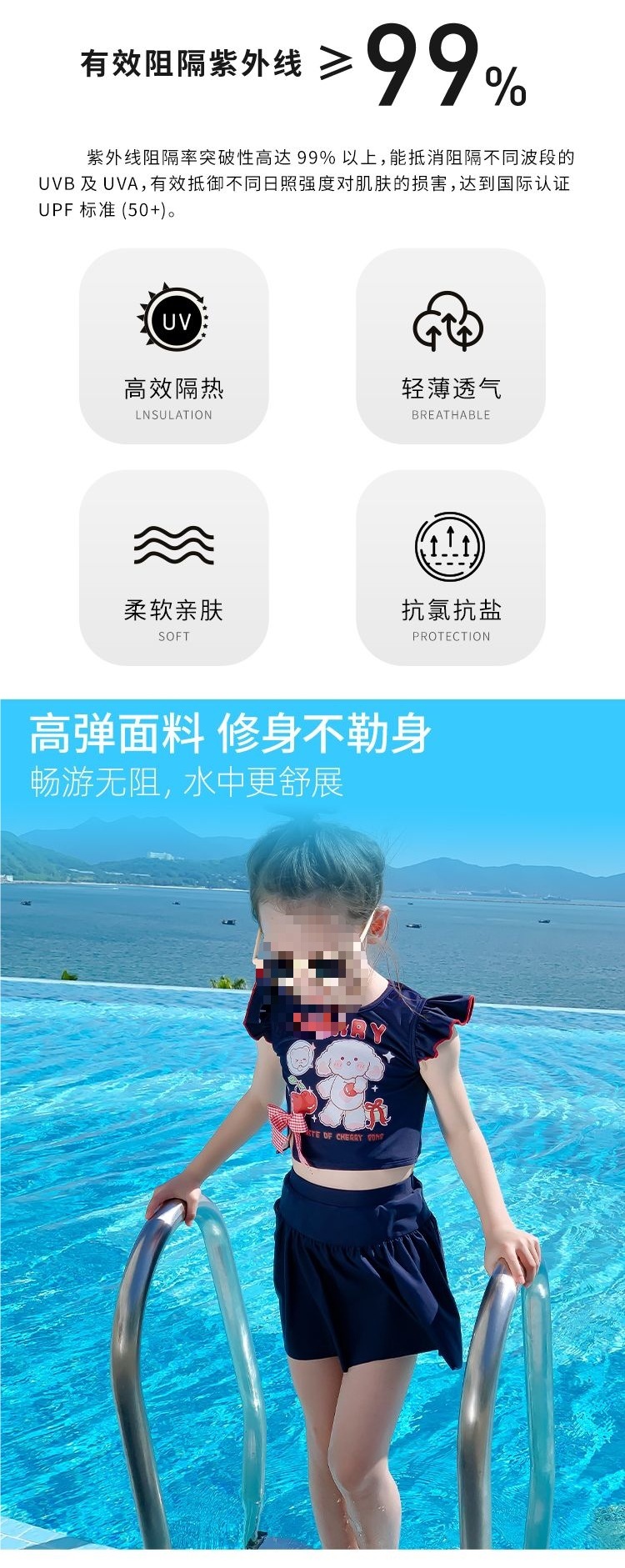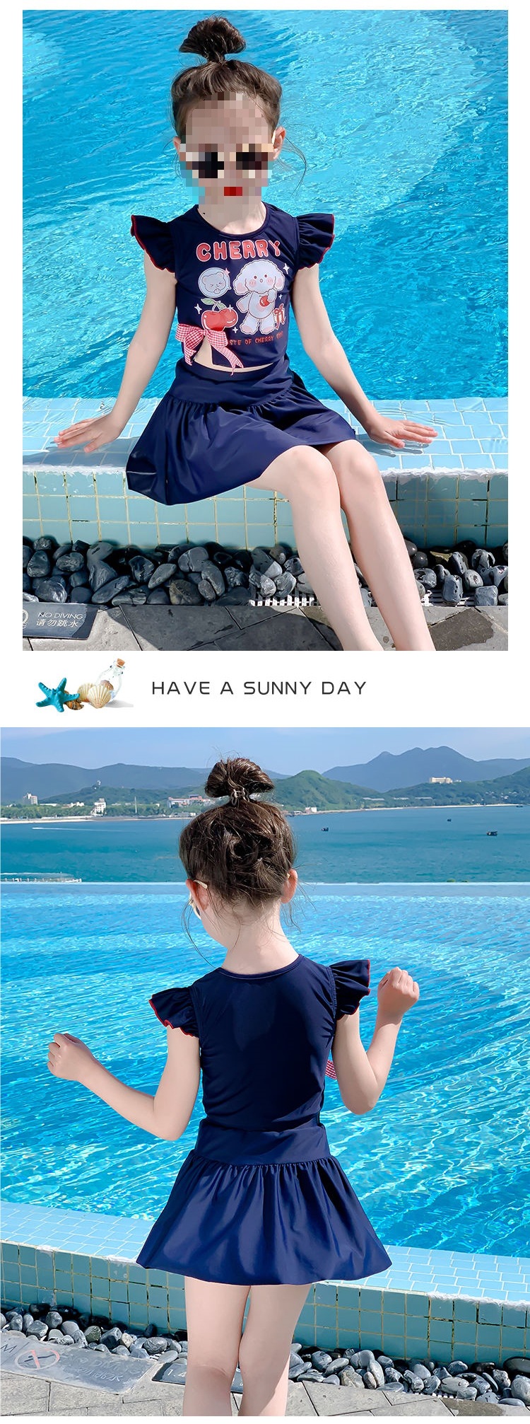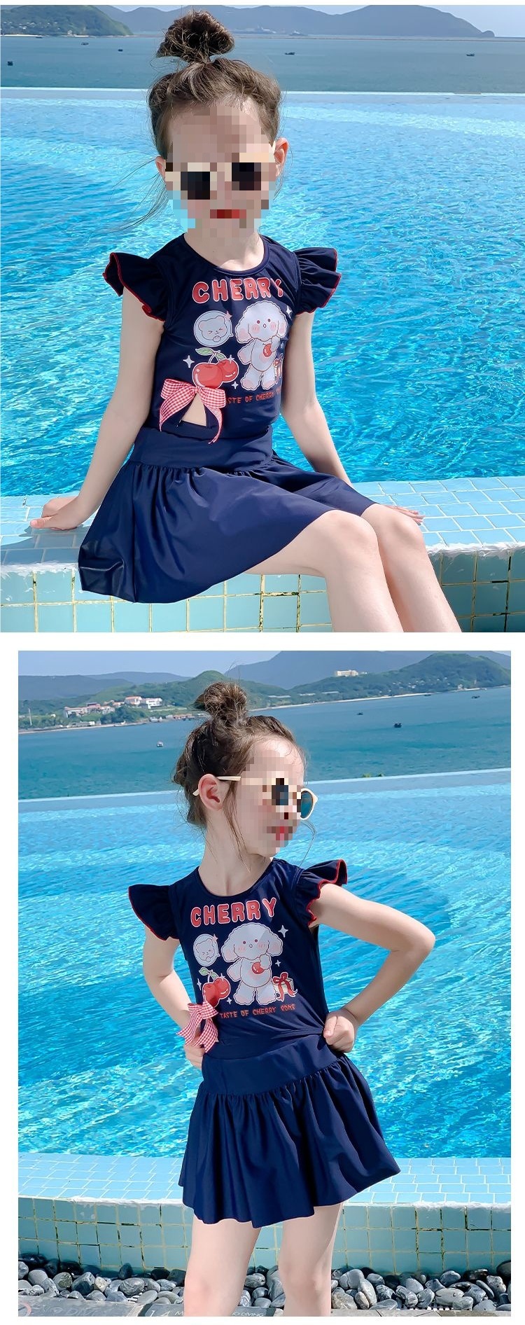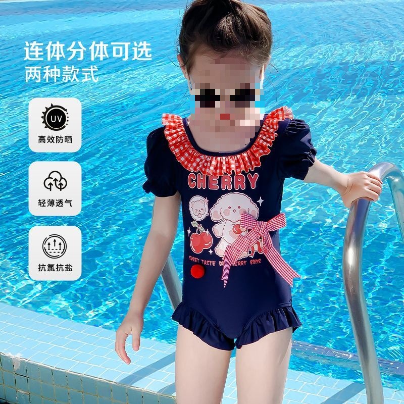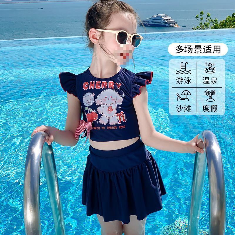 아동용 수영복, 자외선 차단, 속건성, 중소형 아동용 스플릿 스커트 수영복, 여아용 원피스 귀엽고 세련된 수영복스토어 가기