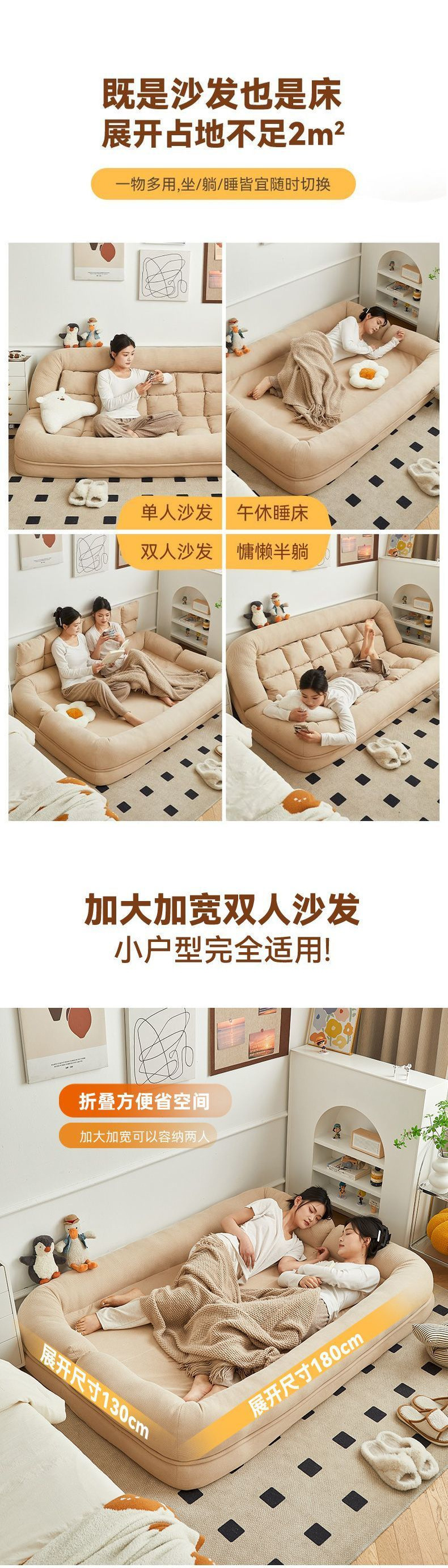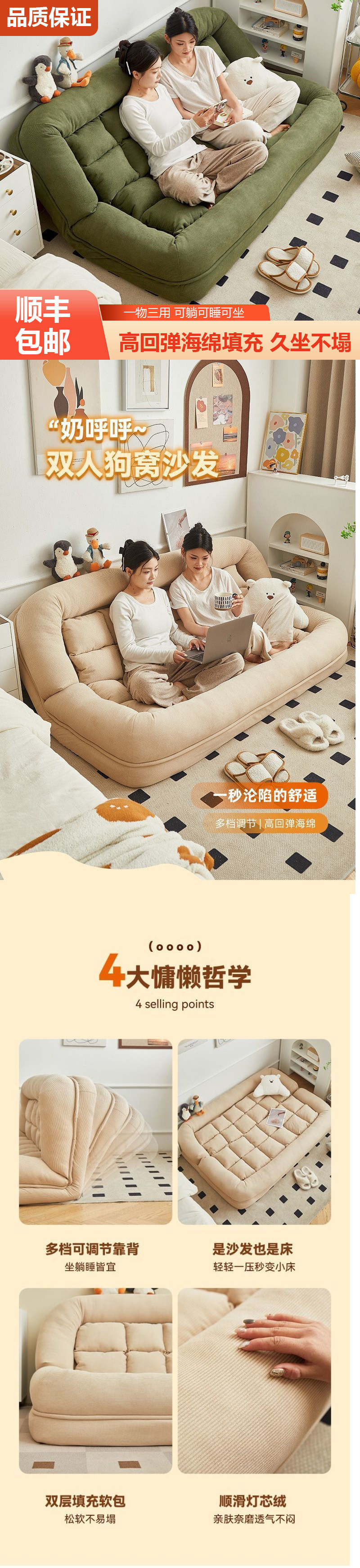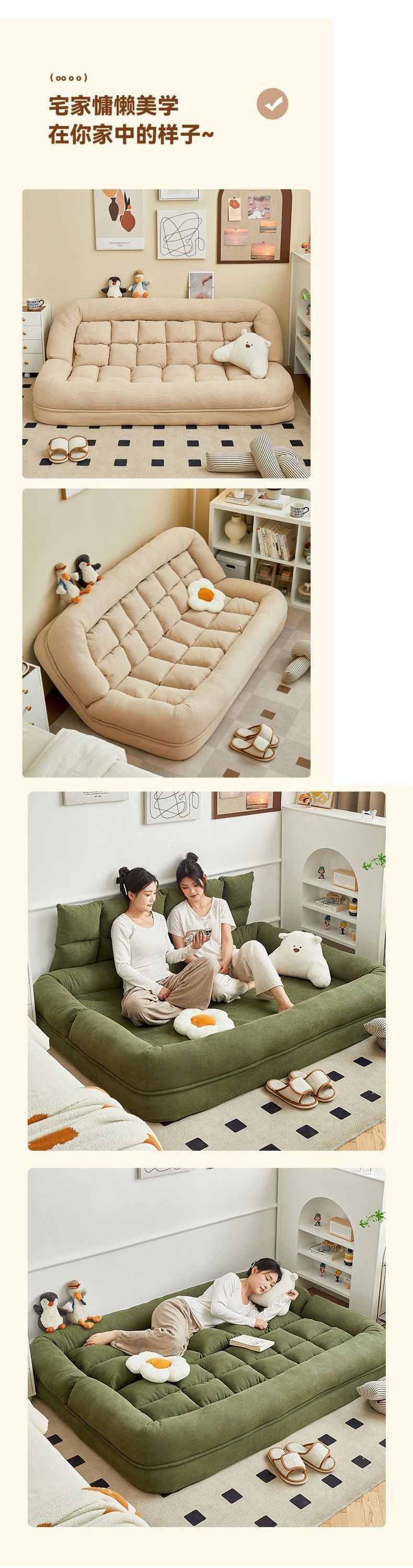 리클라이닝 및 수면이 가능한 게으른 소파, 접이식 다다미, 더블 침실 소파 베드, 겸용 거실, 대형 인간 개집스토어 가기