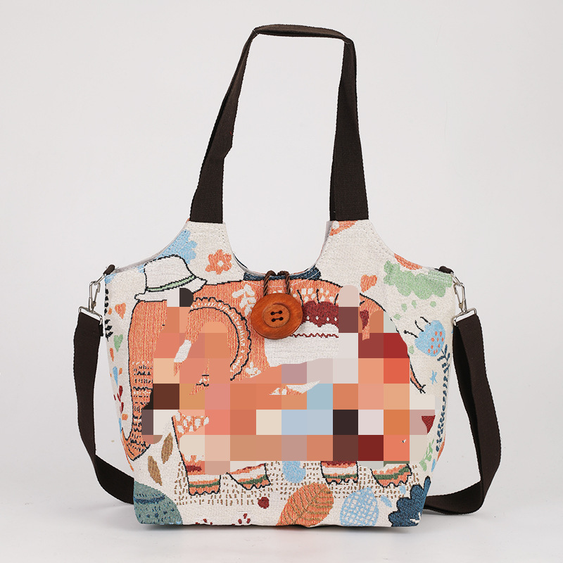 민족 스타일 코끼리 숄더 백 양면 자수 자카드 캔버스 가방 절묘한 나무 버클 패션 여행 메신저 가방 도매