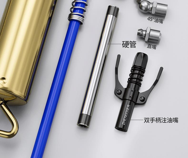 • [120cc] 권총형 그리스건 + 내부 육각형 + 방폭 호스 + 이중 손잡이 그리스 노즐 (하드 튜브 + 플랫 노즐 + 포인티드 노즐)