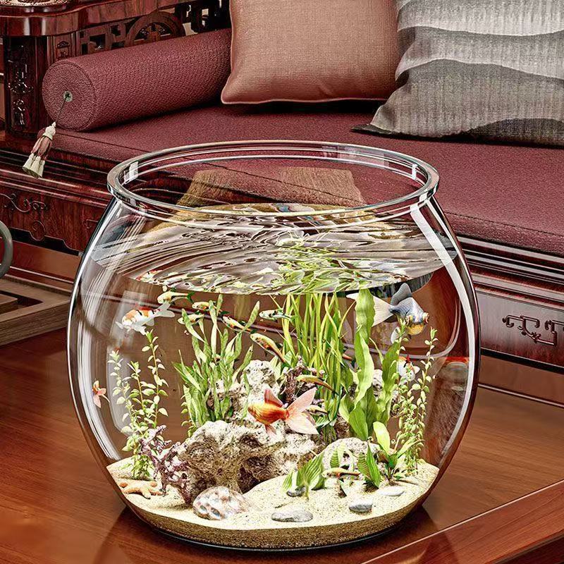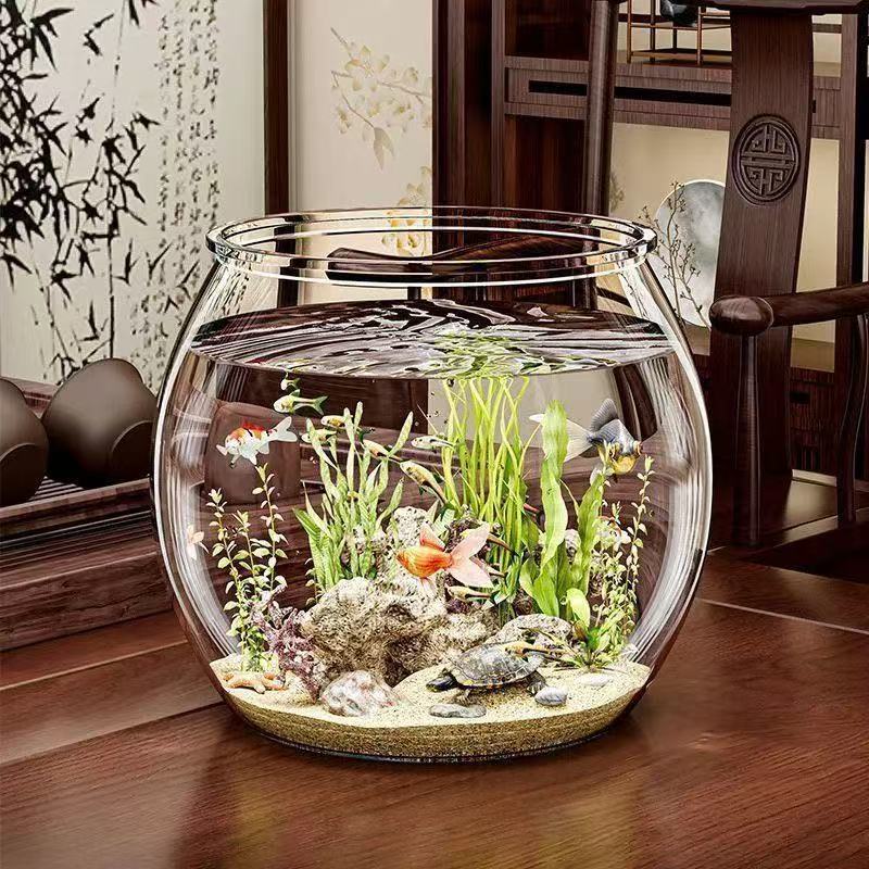 물고기 탱크 작은 가정용 플라스틱 모조 유리 낙하 방지 거실 사무실 금붕어 녹색 식물 작은 조경 생태 탱크스토어 가기