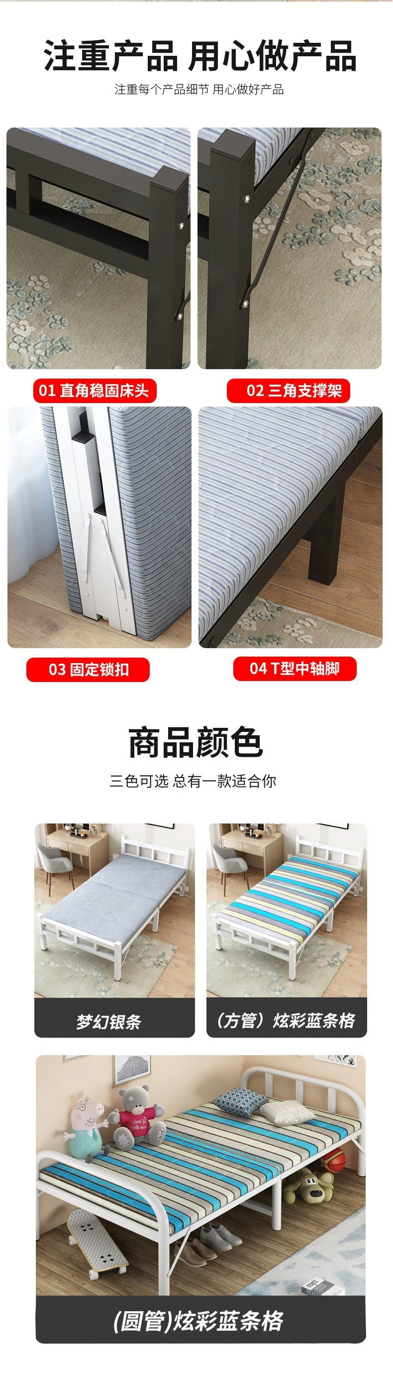 철사 침대 접이식 싱글 더블 철제 침대 미터 폭 싱글 침대 센티미터 폭 1.2m 가정용 가구 좋음스토어 가기