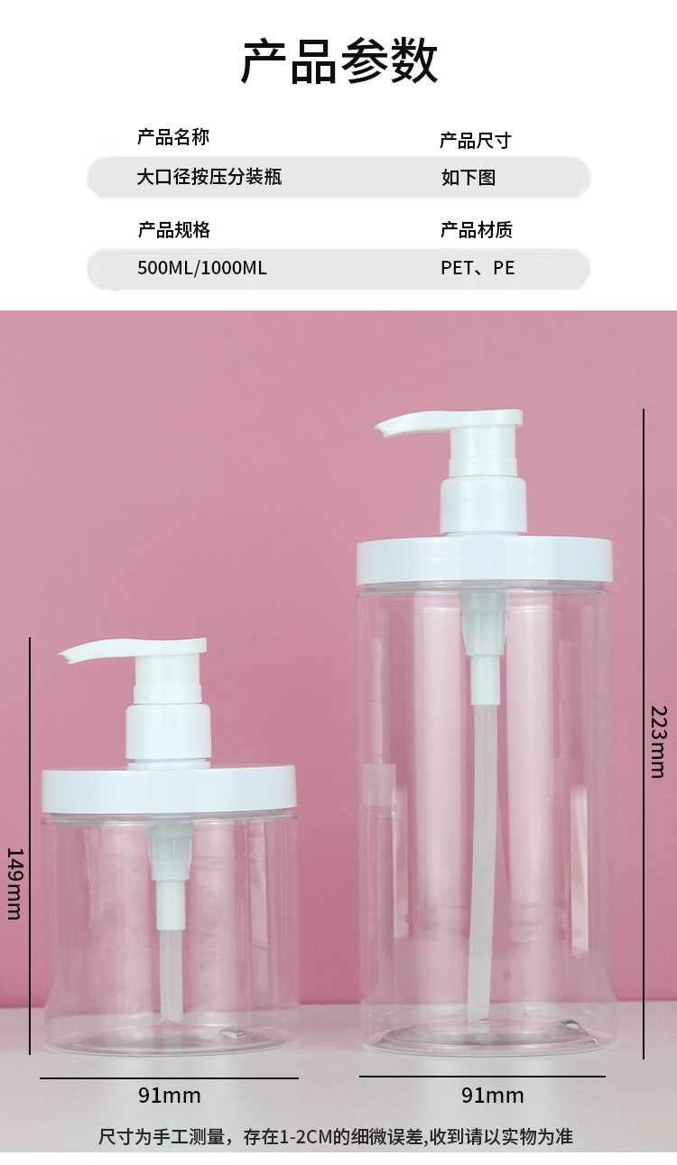 대구경 프레스 디스펜싱 병 가정용 샤워 젤 병 대용량 프레스 핸드 비누 샴푸 빈 병