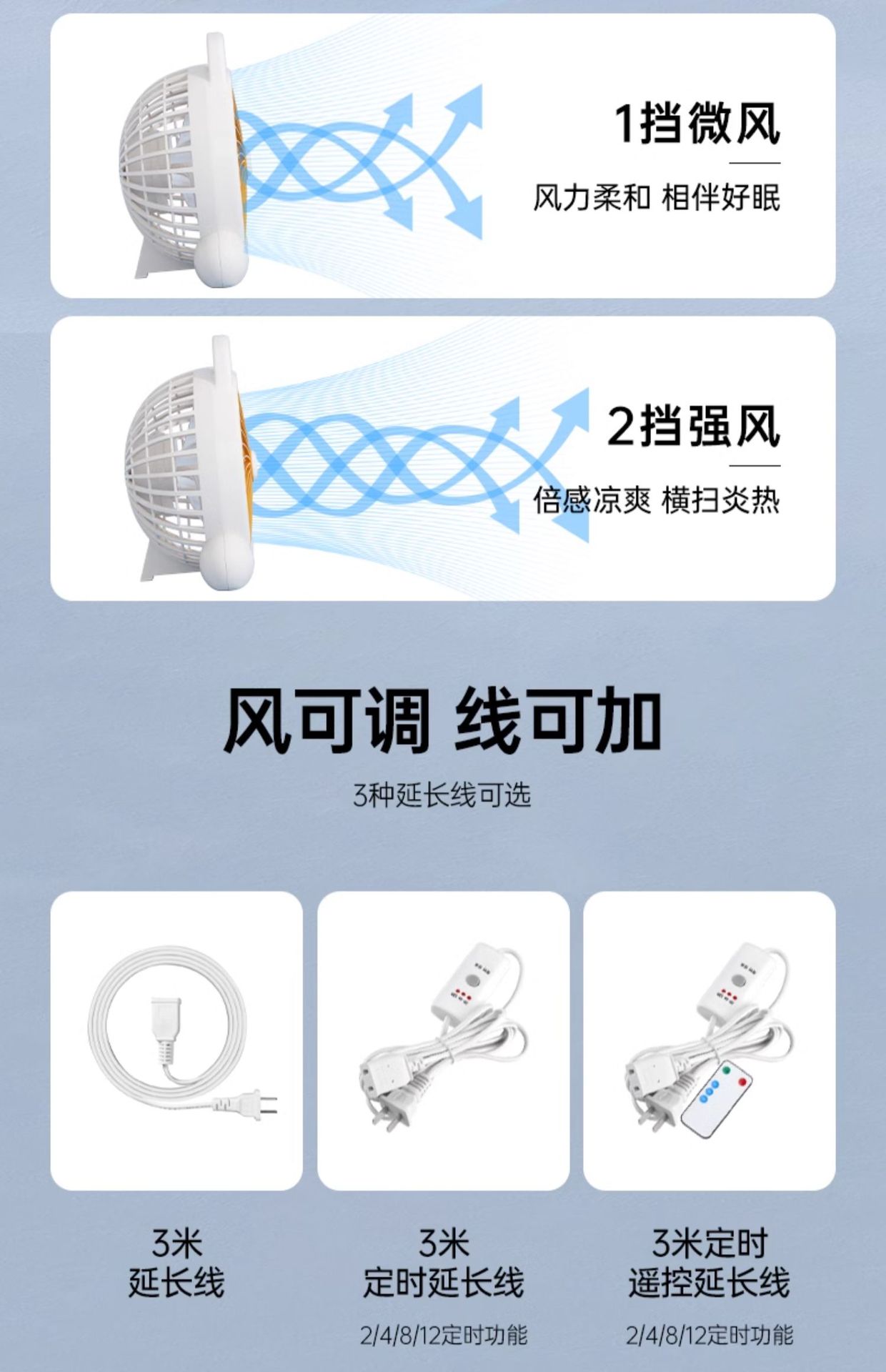 • 표준 데스크탑/실외 겸용 [오통쌀 순환 자연풍] 조용하고 강풍이 부는 그릴 분리 및 세탁 가능