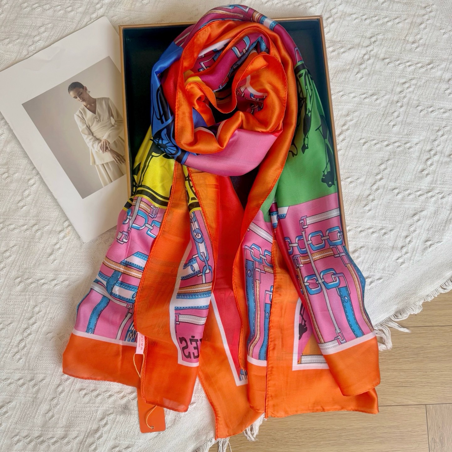 24 봄 여름 여성 실크 스카프, 패셔너블한 프랑스 복고풍 기질, 다용도 모조 실크 뽕나무 실크 스카프