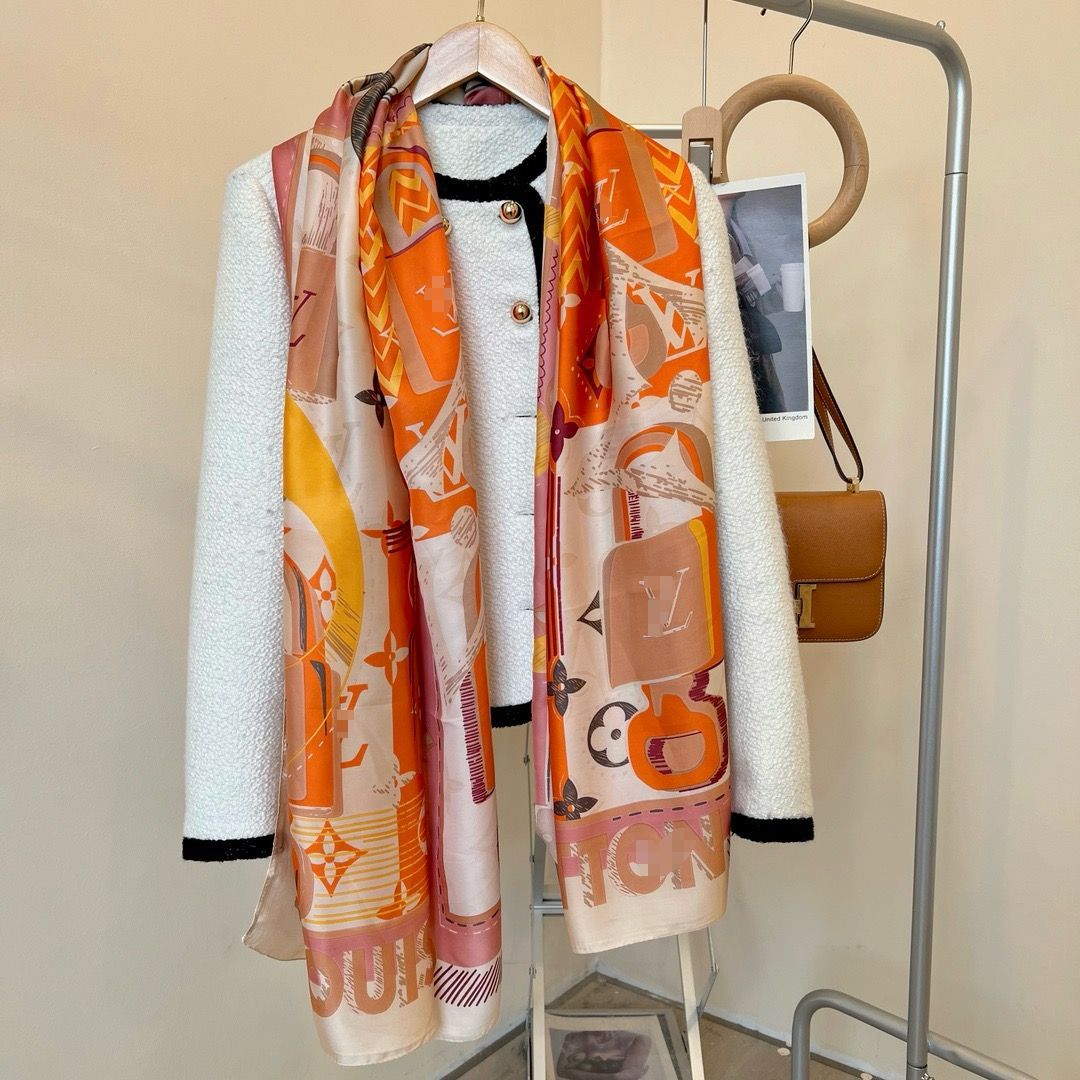 24 봄 여름 여성 실크 스카프, 패셔너블한 프랑스 복고풍 기질, 다용도 모조 실크 뽕나무 실크 스카프스토어 가기