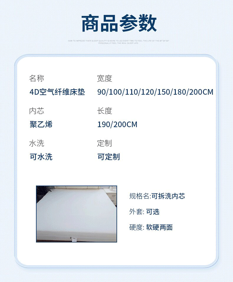 4D 에어 섬유 매트리스 발코니 쿠션 POE 높은 탄력성 통기성 빨 수있는 어린이 쿠션 학생 기숙사 매트리스