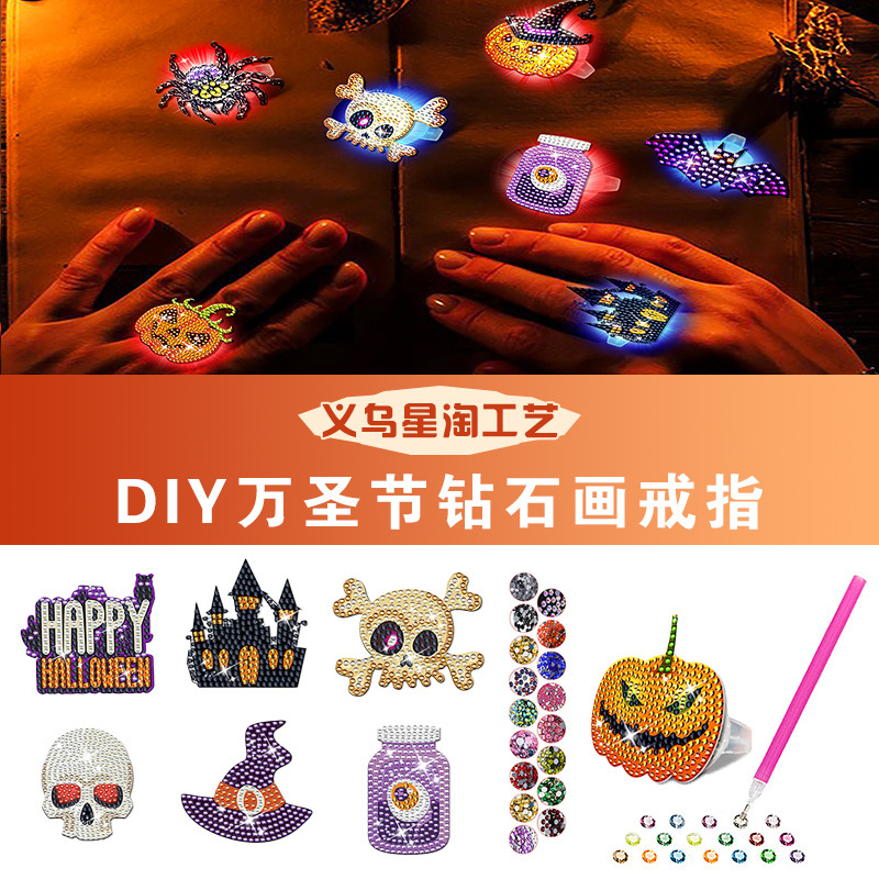 사용자 정의 크로스 보더 다이아몬드 페인팅 수제 diy 크리 에이 티브 할로윈 유령 호박 공포 보석 다이아몬드 스티커 반지