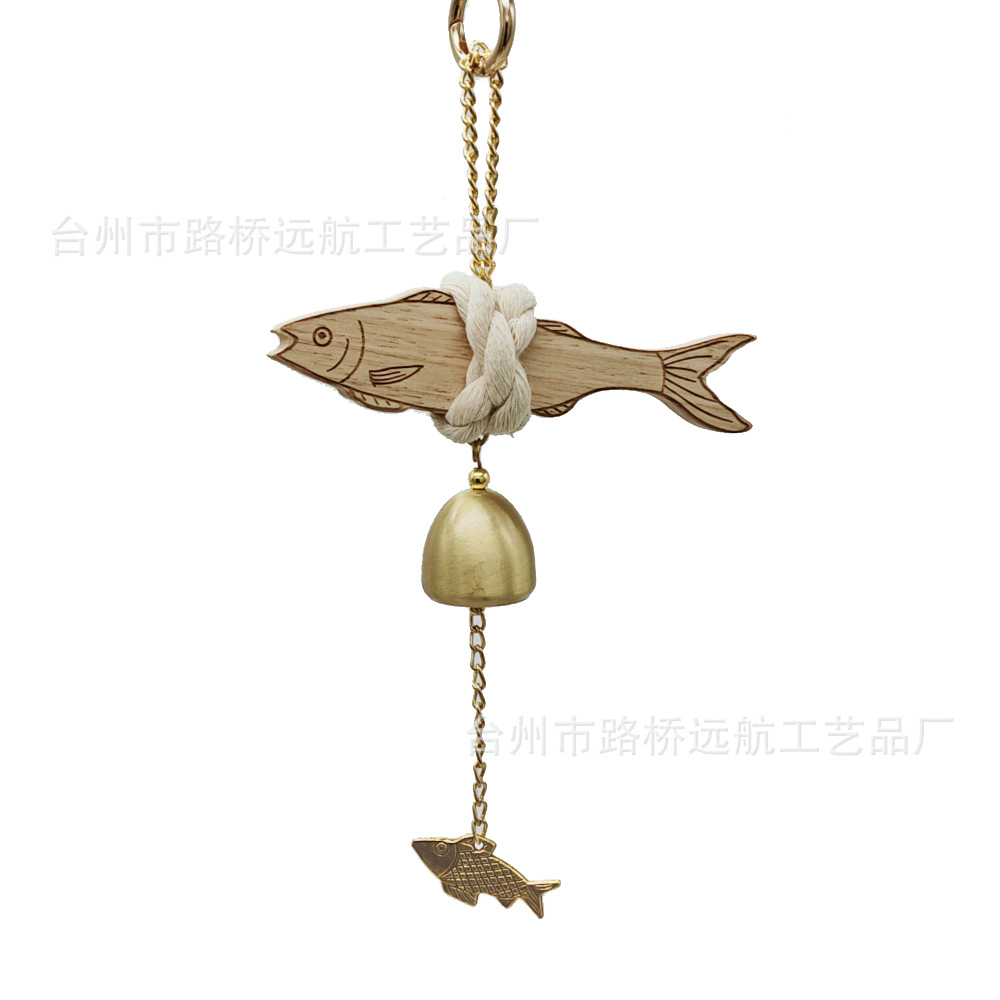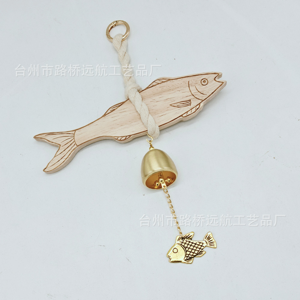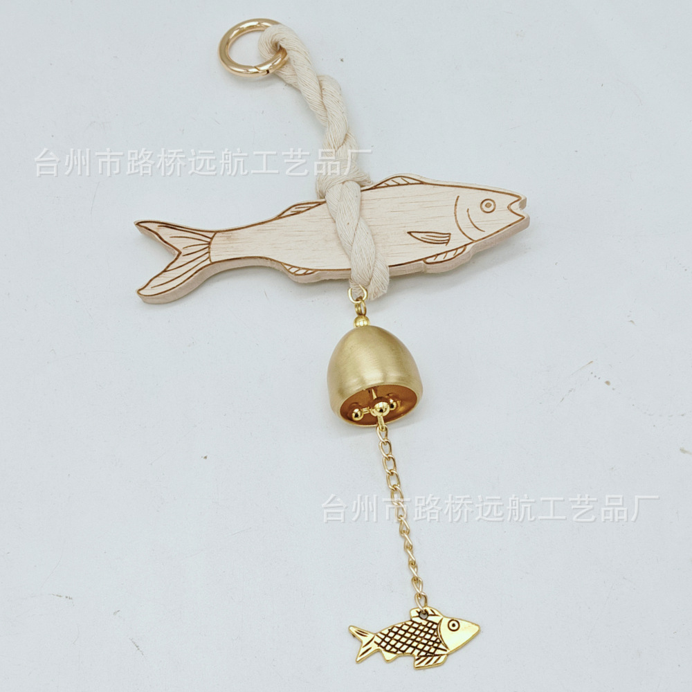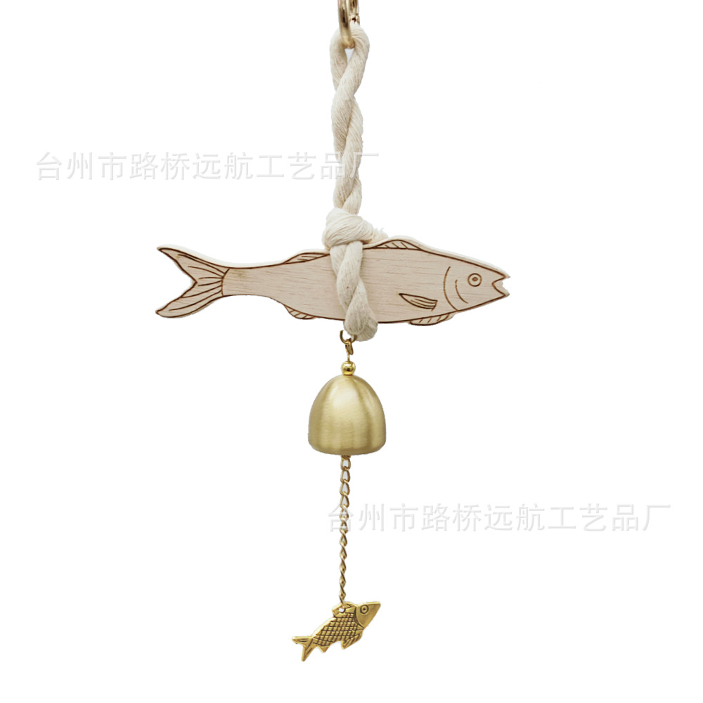 국경을 넘는 물고기 모양 나무 초인종 벽걸이 현관 장식 집들이 풍경종 이사 선물 개업 기념품 장식품