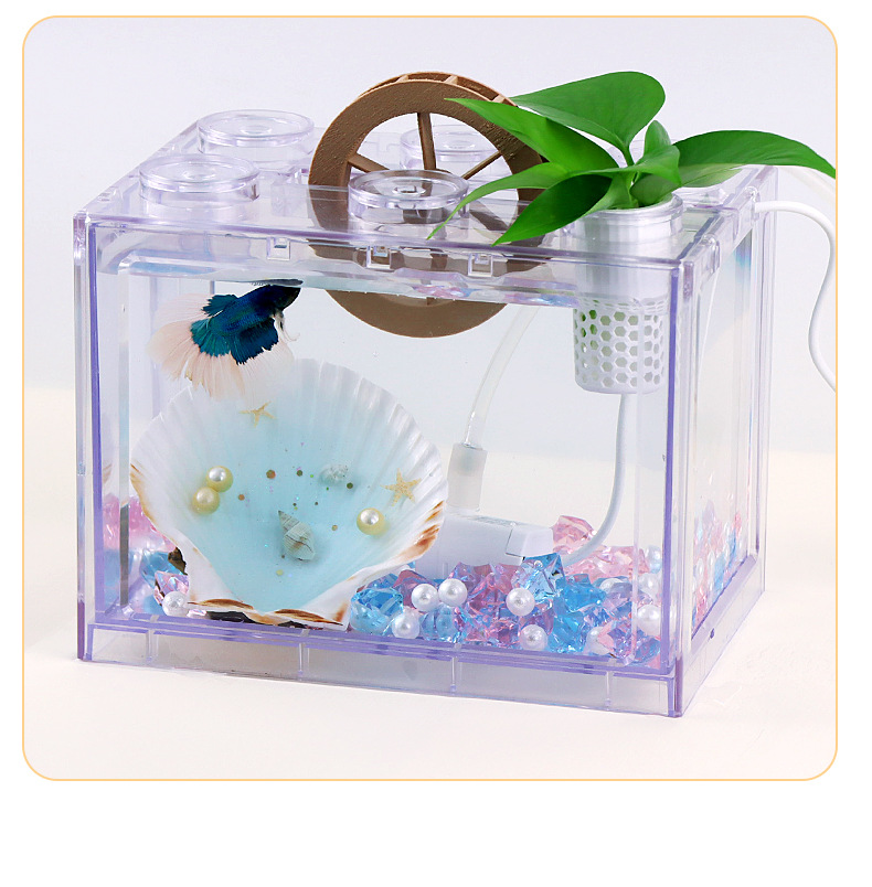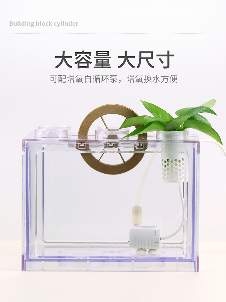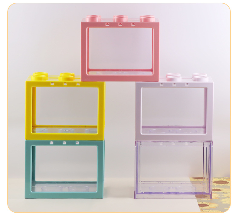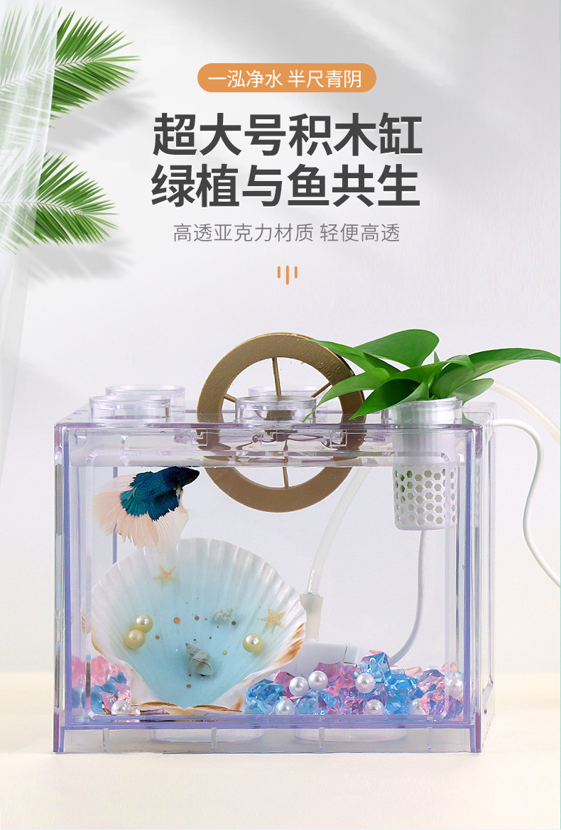 초대형 빌딩 블록 탱크 데스크탑 소형 미니 Betta 탱크 인터넷 연예인 야시장 아크릴 가리비 빌딩 블록 물고기 탱크
