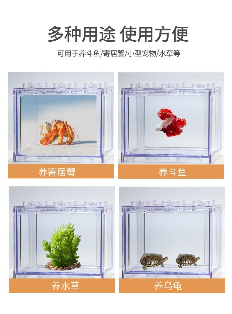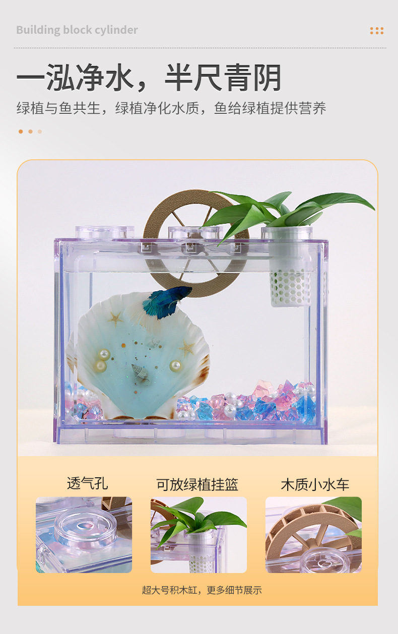 초대형 빌딩 블록 탱크 데스크탑 소형 미니 Betta 탱크 인터넷 연예인 야시장 아크릴 가리비 빌딩 블록 물고기 탱크스토어 가기