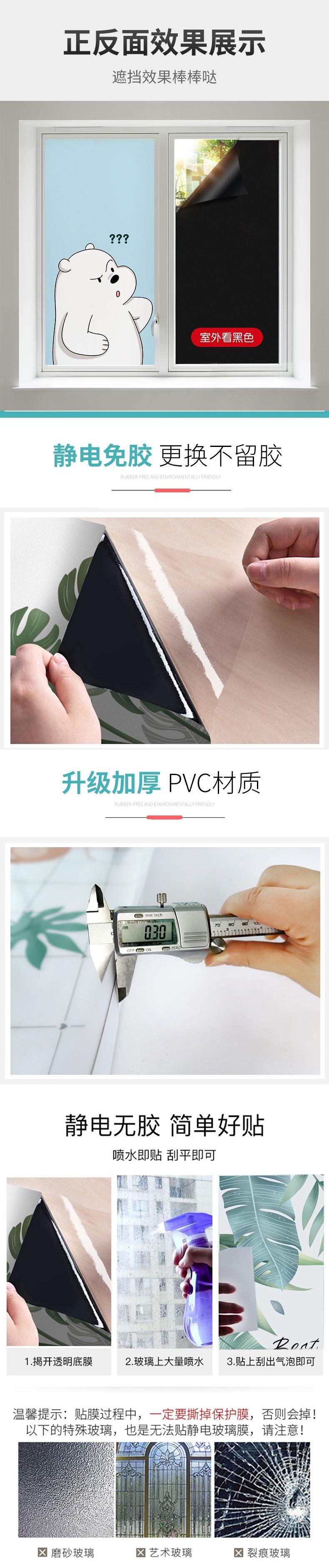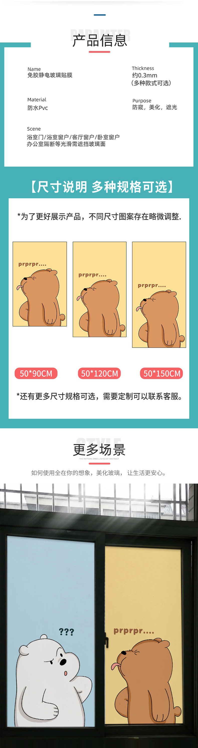 욕실용 전면 방지 및 노출 방지 유리 차광 스티커, 창문 차양 및 단열용 정전기 스티커, 크기는 정전식입니다.스토어 가기
