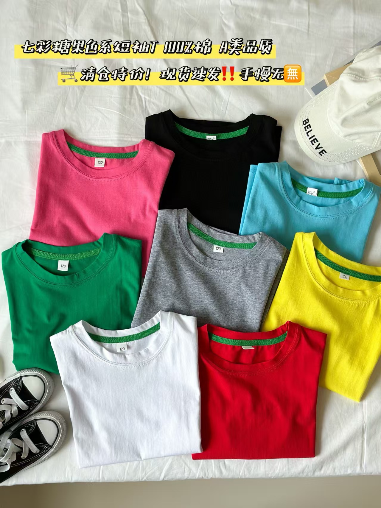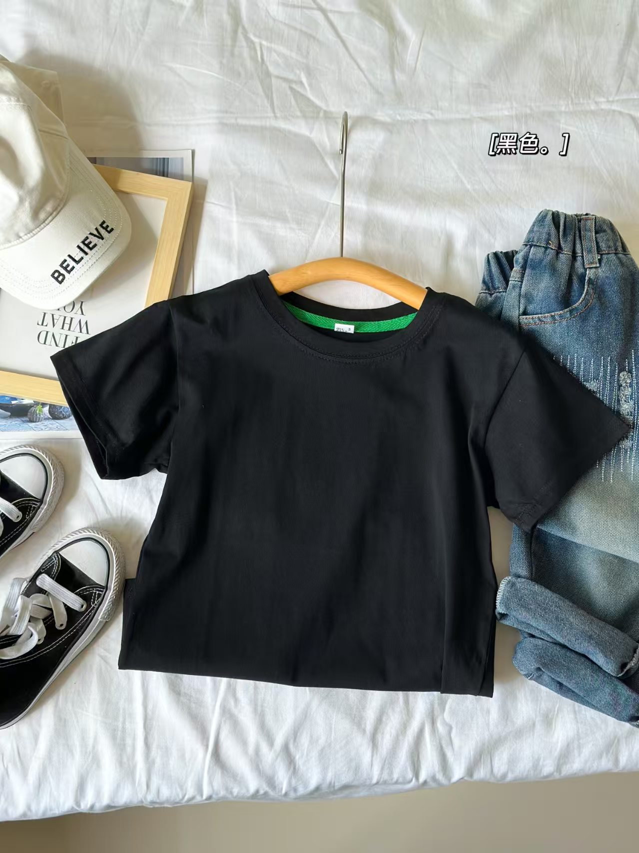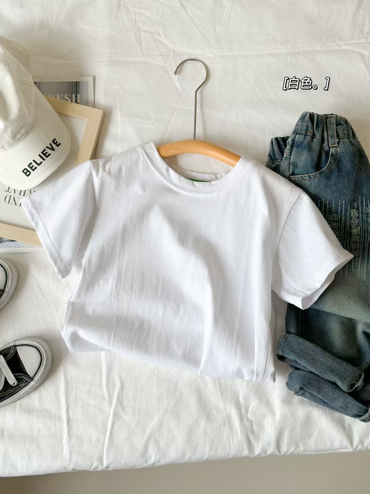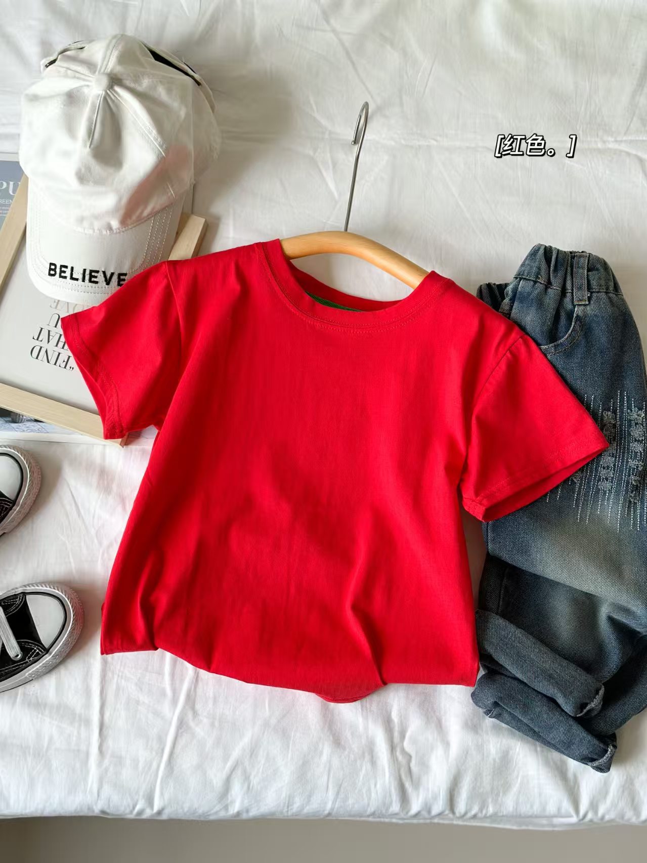 2025 여름 캔디 컬러 어린이 간단한 솔리드 컬러 라운드 넥 순수 코튼 활기찬 남성과 여성의 같은 스타일 티셔츠 탑 도매스토어 가기